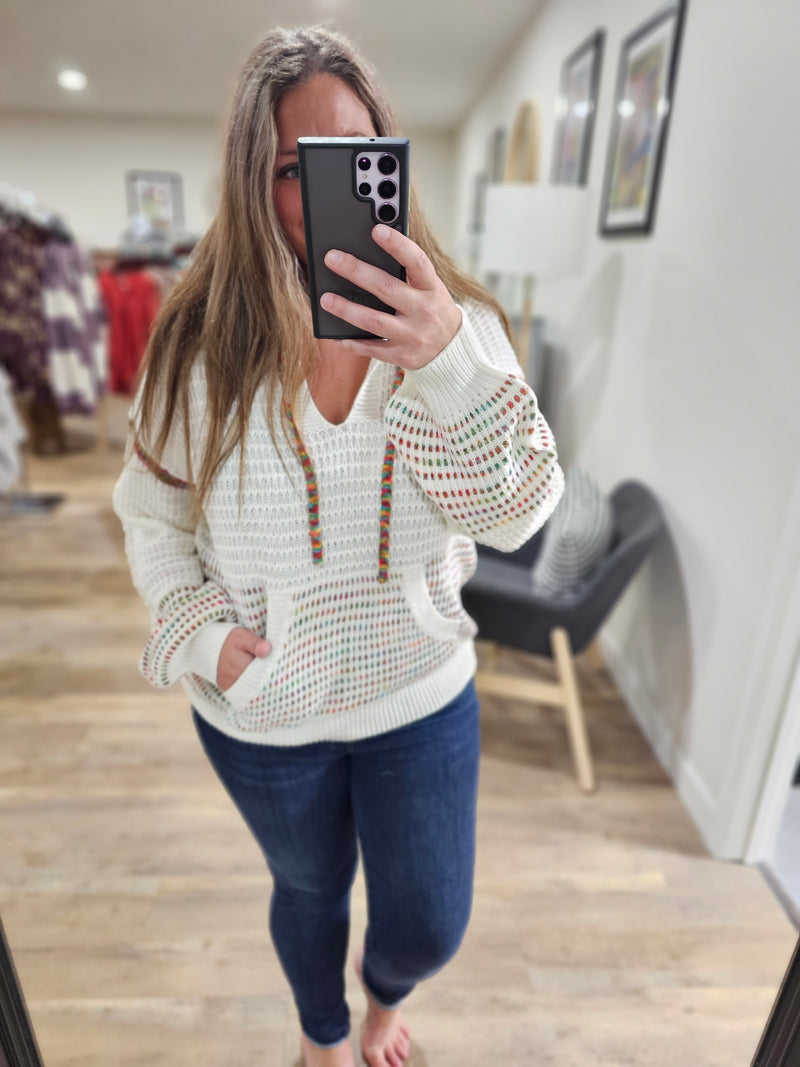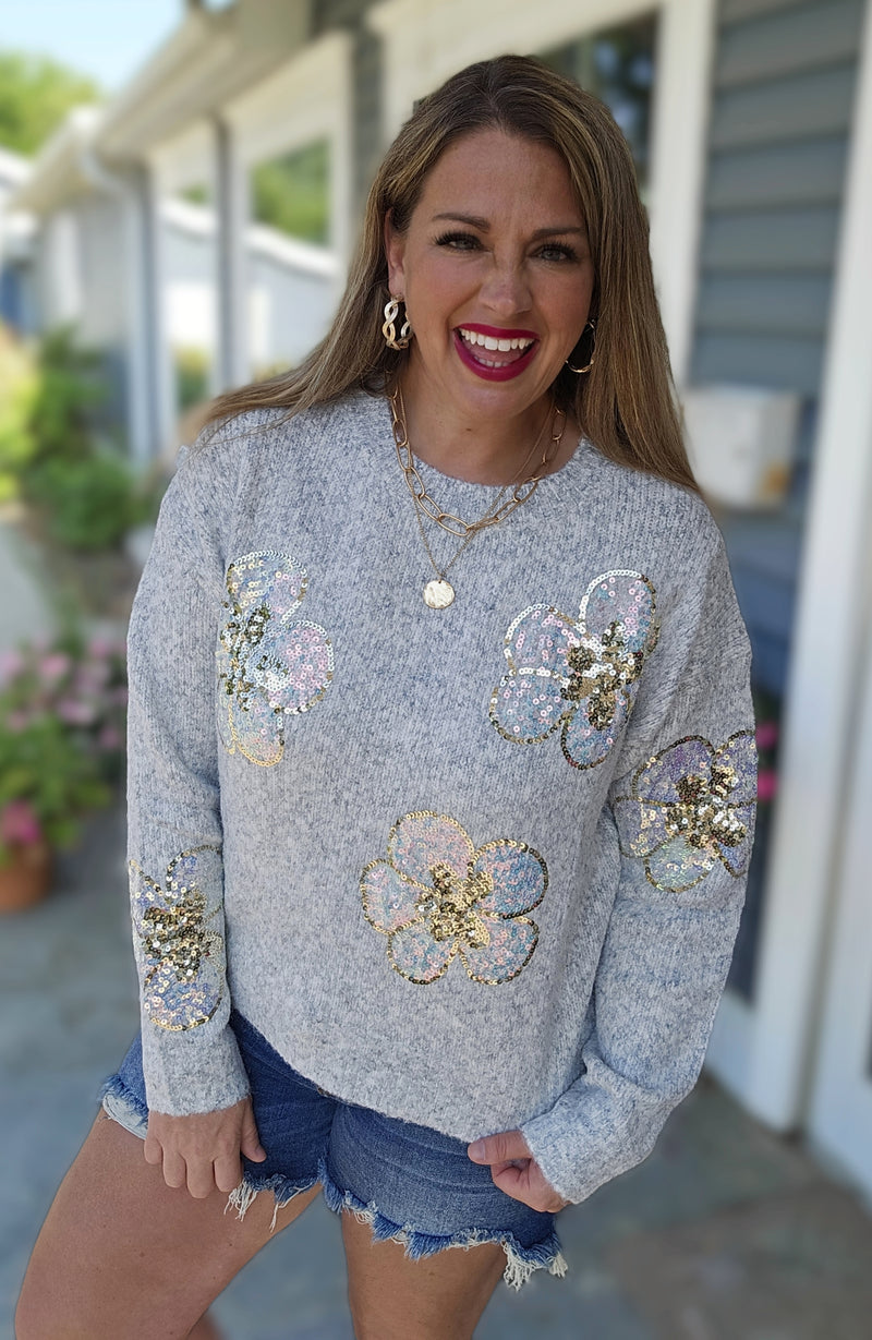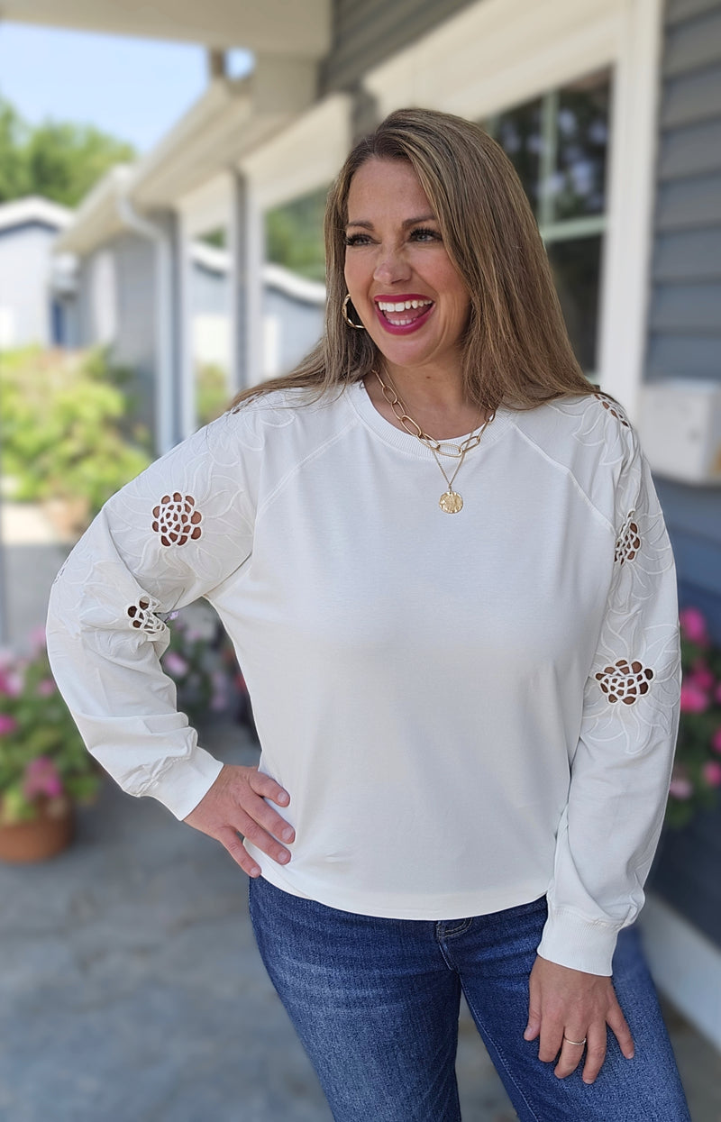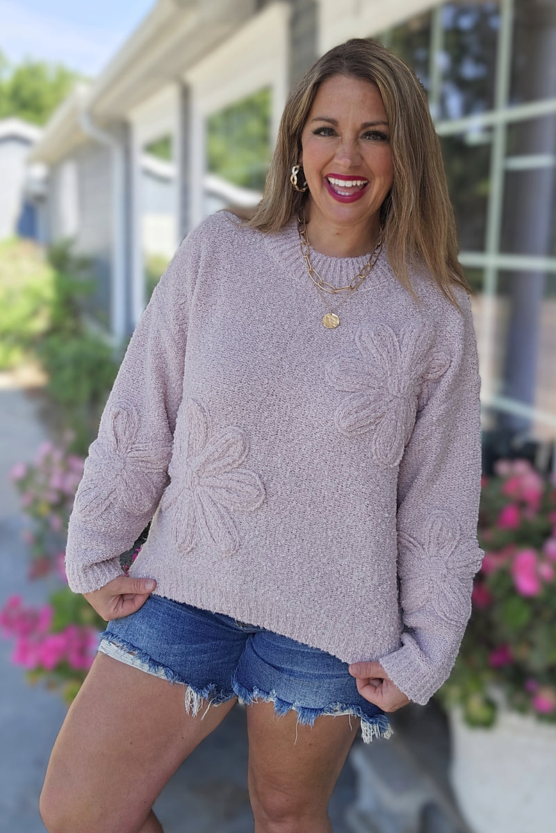 LAVEDNER/CREAM FLORAL KNIT SWEATER