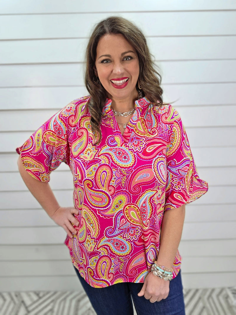 DEAR SCARLETT BREEZE SPLIT SLEEVE TOP - EMERALD PAISLEY PRINT