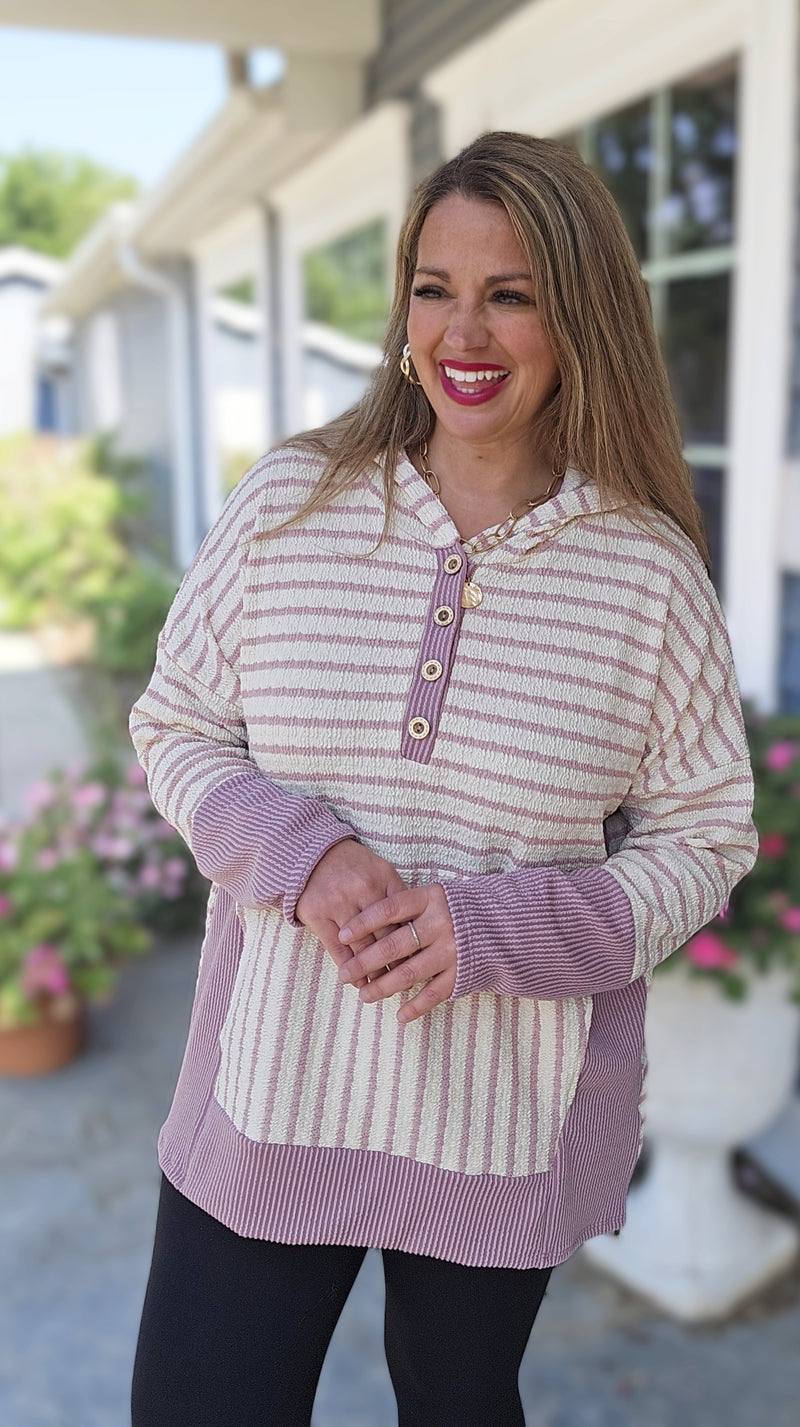TANGERINE/CREAM STRIPED FRENCH TERRY PULLOVER