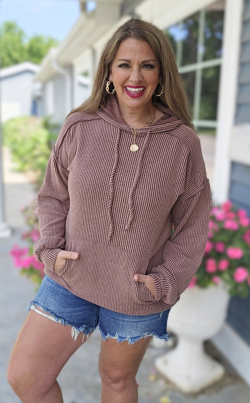 DEAR SCARLETT LAVISH RASIED RIBBED BUTTON TRIM SET - CHOCOALATE