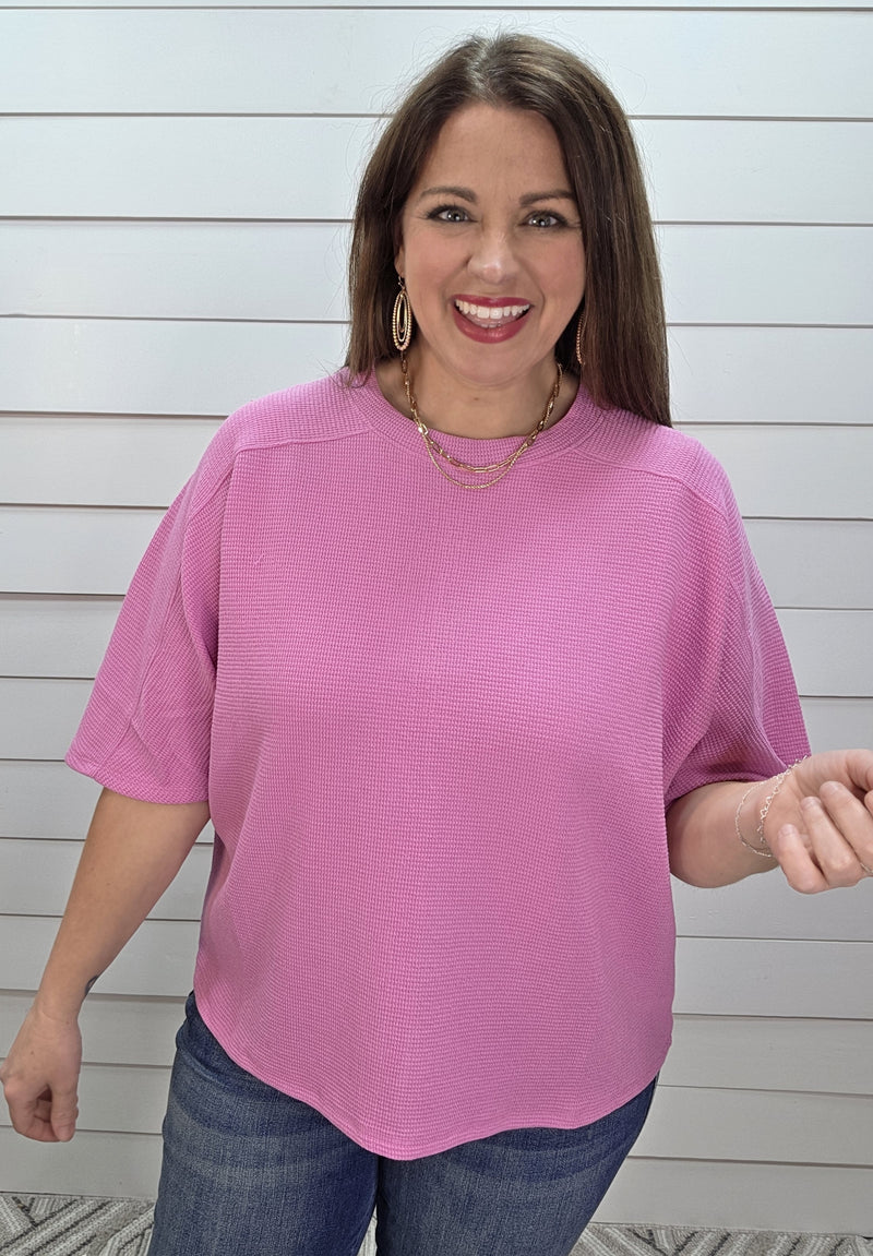 PINK/PURPLE/WHITE COLORBLOCK SHORT SLEEVE SWEATER KNIT TOP