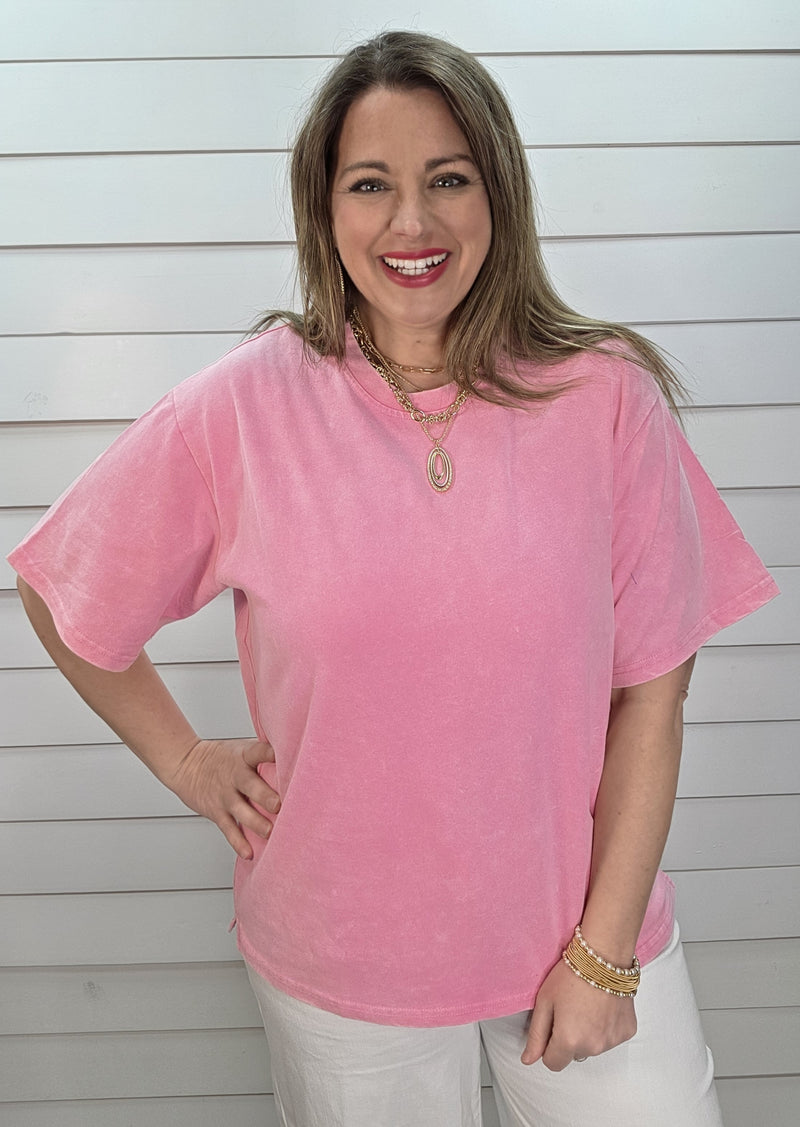 PINK MINERAL WASH COTTON SHORT SLEEVE TOP