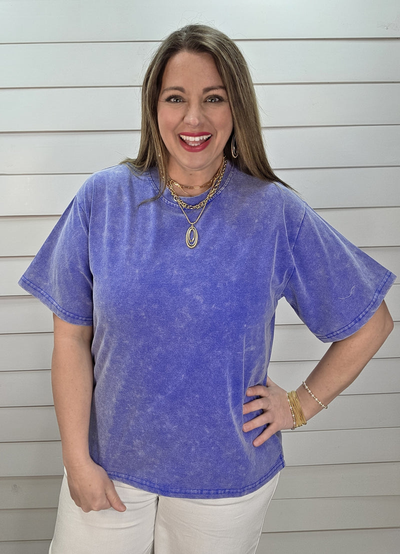 BLUE MINERAL WASH COTTON SHORT SLEEVE TOP