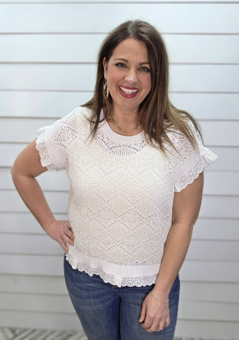 WHITE LACE MOCK NECK TOP W/ TANK TOP