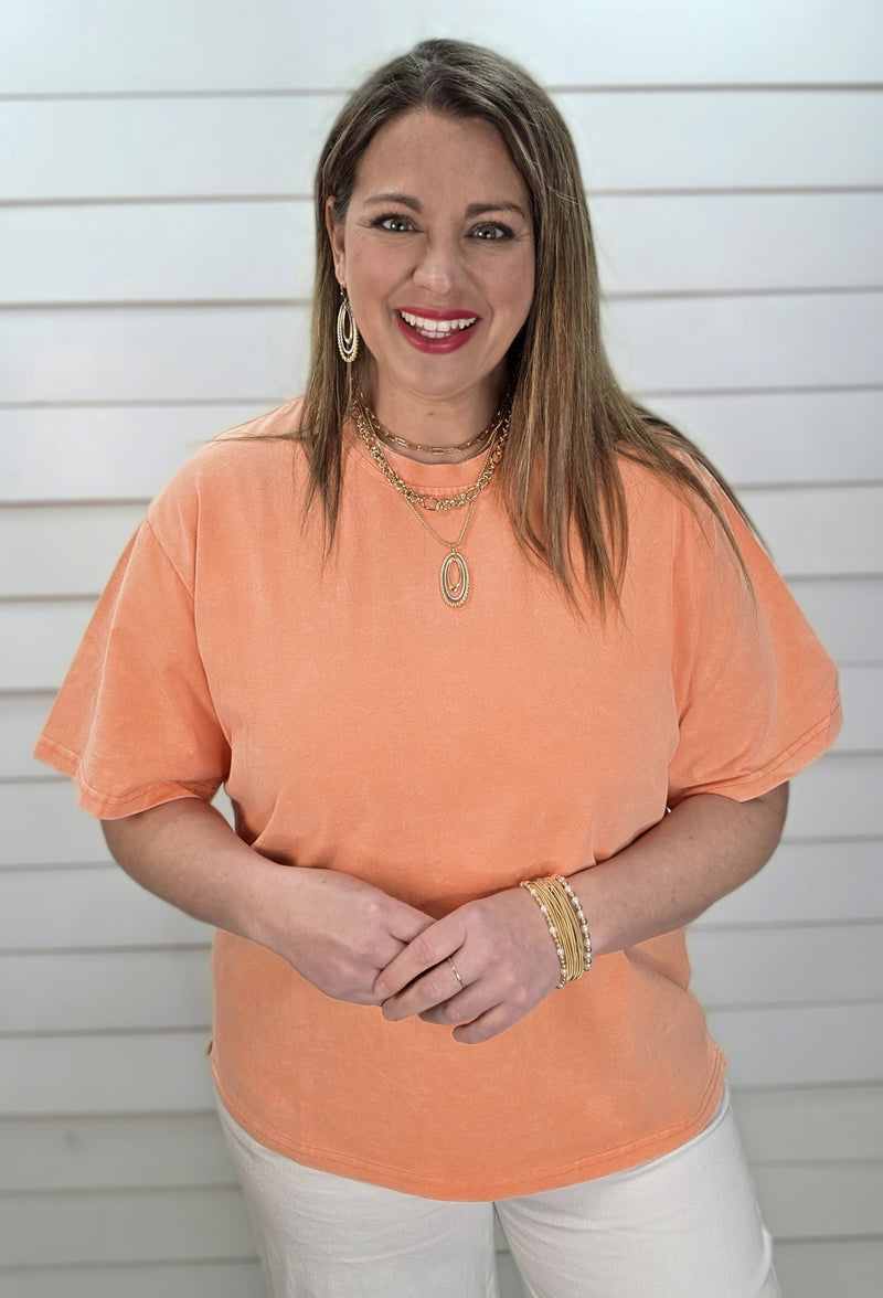 ORANGE MINERAL WASH COTTON SHORT SLEEVE TOP