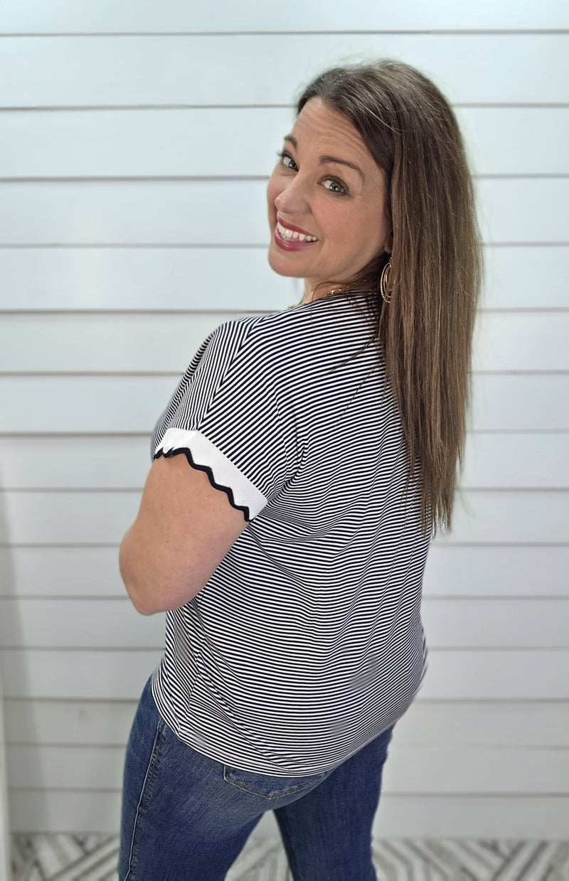 CHAMBRAY STRIPED CONTRAST BUTTON TOP