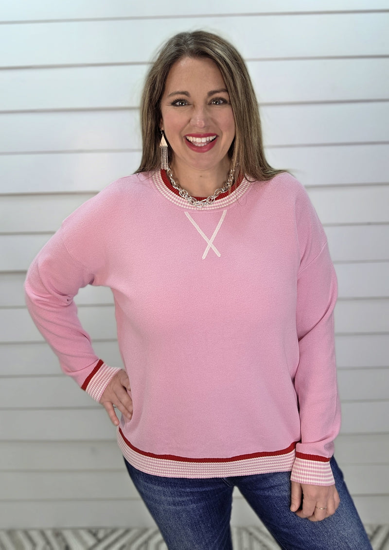 PINK CONTRAST SWEATER W/ RED/WHITE TRIM
