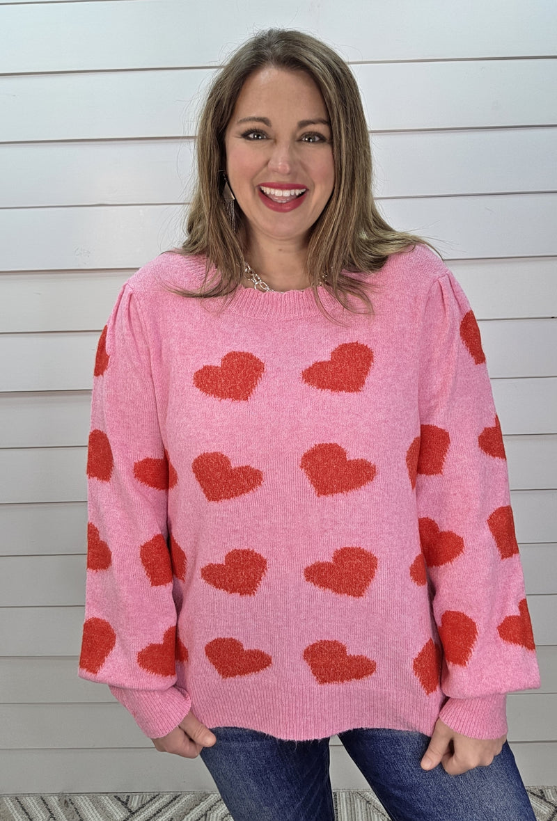 PINK SEQUIN CONVERSATION HEART PULLOVER