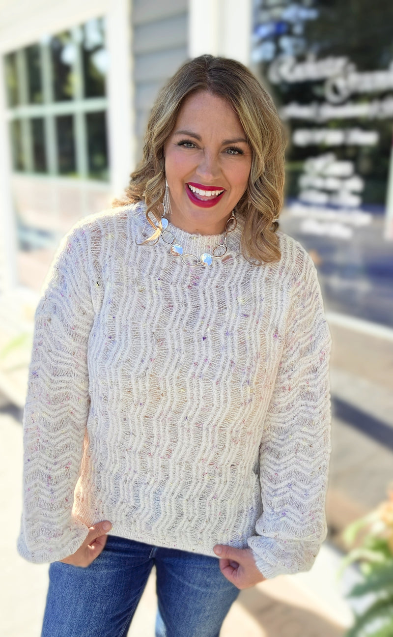 CREAM LOOSE WEAVE KNIT MULTI COLOR THRED SWEATER
