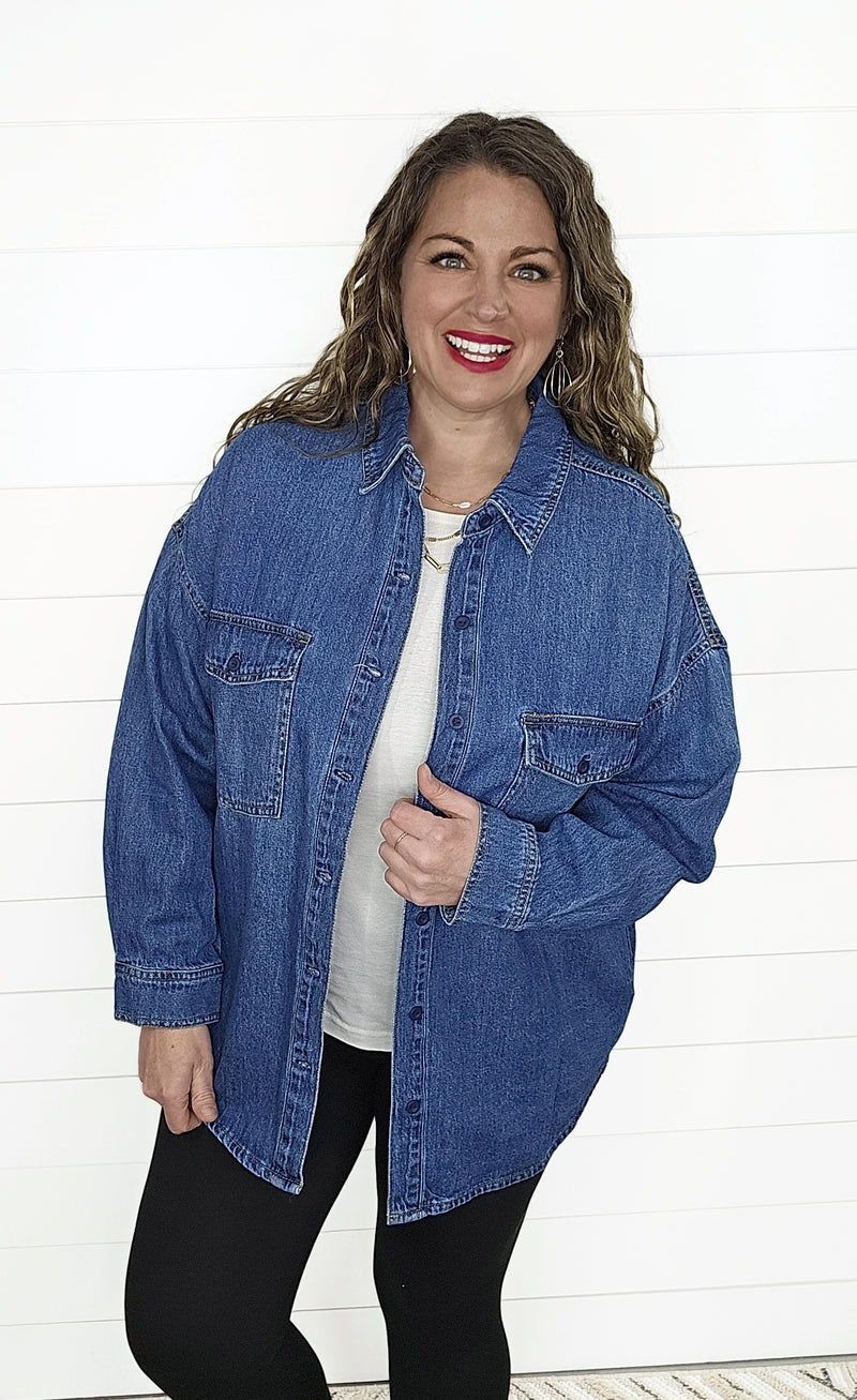 DARK DENIM BOW OVERSIZED SNAP BUTTON SHIRT