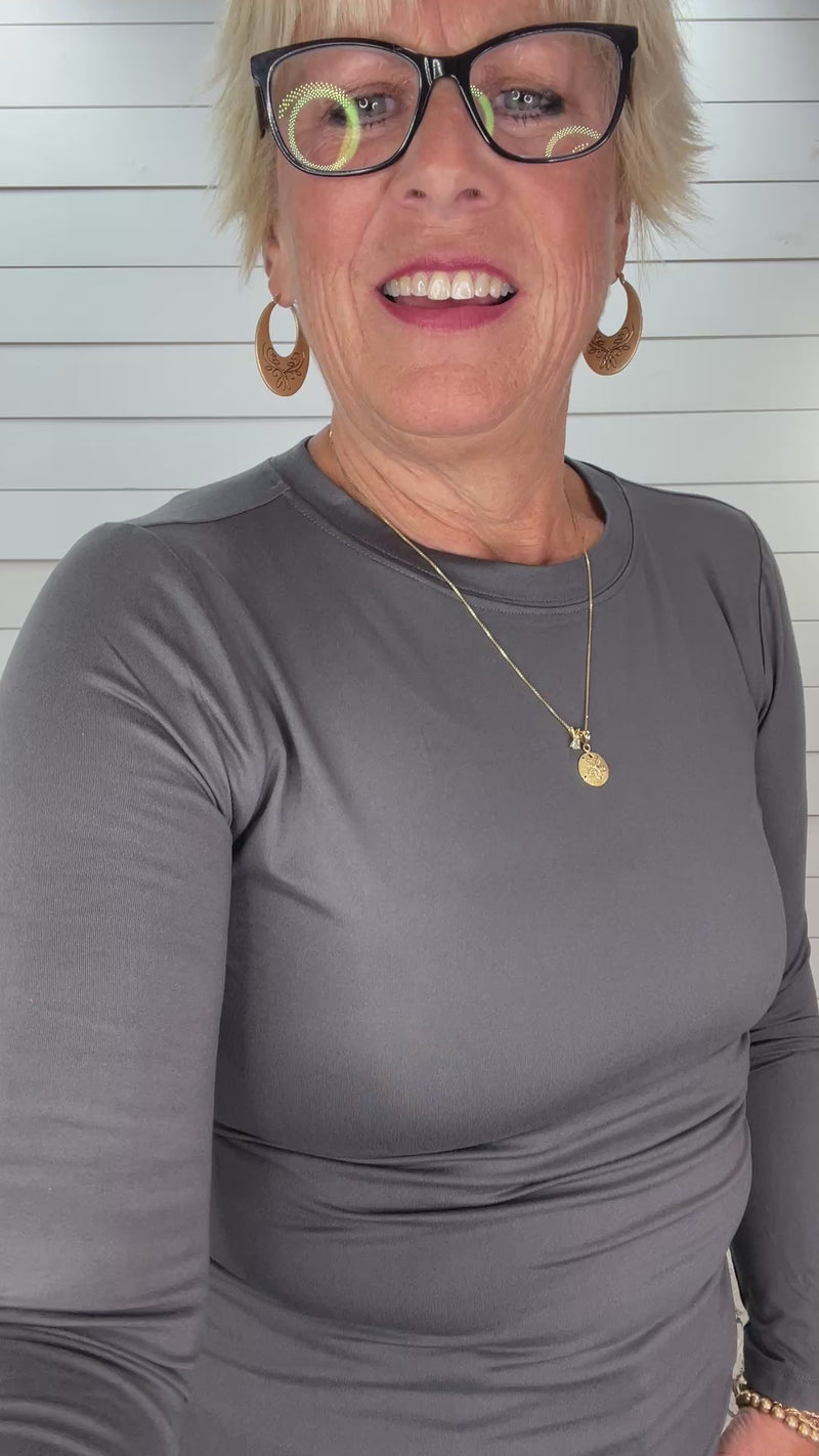 ASH GREY MICROFIBER LONG SLEEVE ROUND NECK TEE