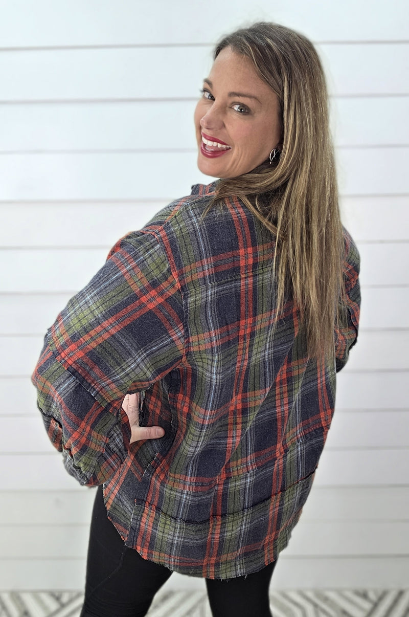 ASH/RED PLAID OVERSIZED BUTTON DOWN PLAID TOP