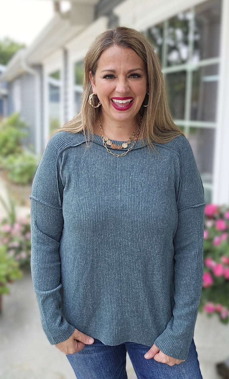 ASH JADE BRUSHED RIBBED HACCI HI LOW KNIT TOP