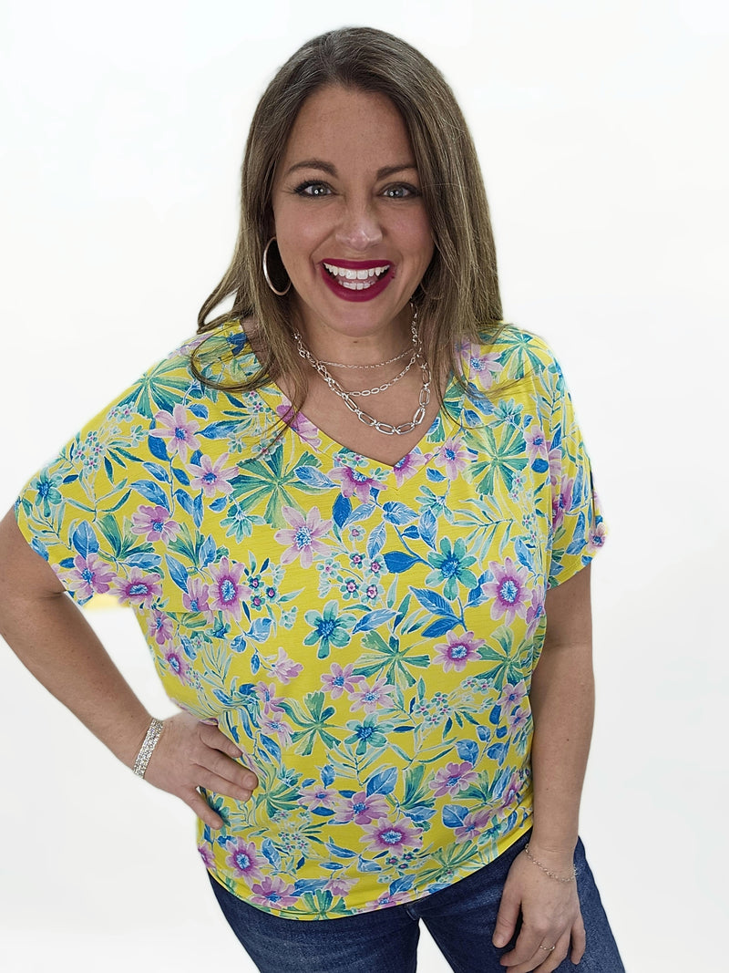 DEAR SCARLETT - SADIE TOP - YELLOW FLORAL PRINT