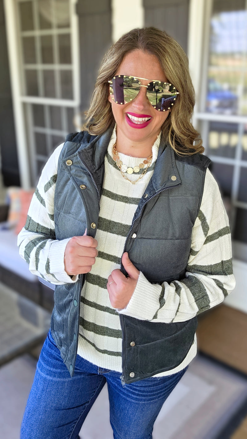 DK GREEN MINI CORD SNAP/ZIPPER VEST