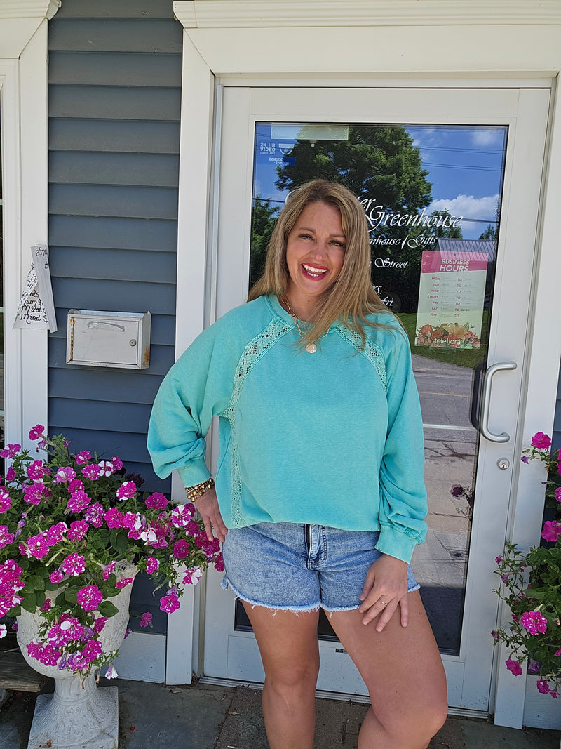 MINT LACE TRIM MINERAL WASH PULLOVER