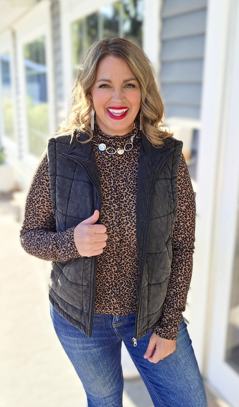 MINERAL WASH ULTRA SOFT QUILTED VEST - BLACK