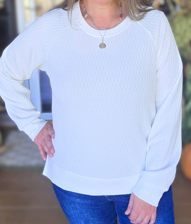 OFF WHITE TEXTURED CREW NECK PULLOVER