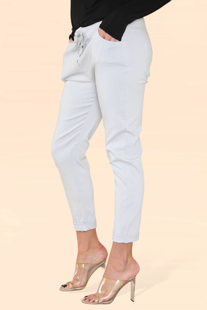 GREY WIDE LEG DRAWSTRING/ELASTIC WAIST JEANS