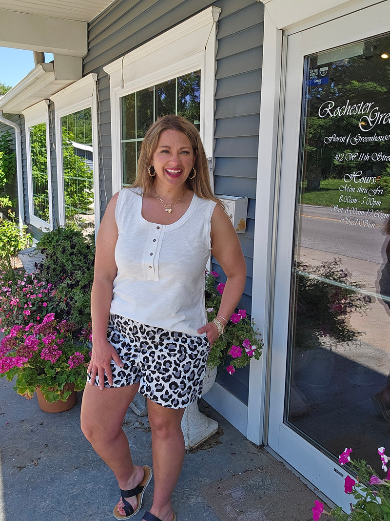 IVORY/GREY/BLACK LEOPARD ELASTIC WAIST SHORTS