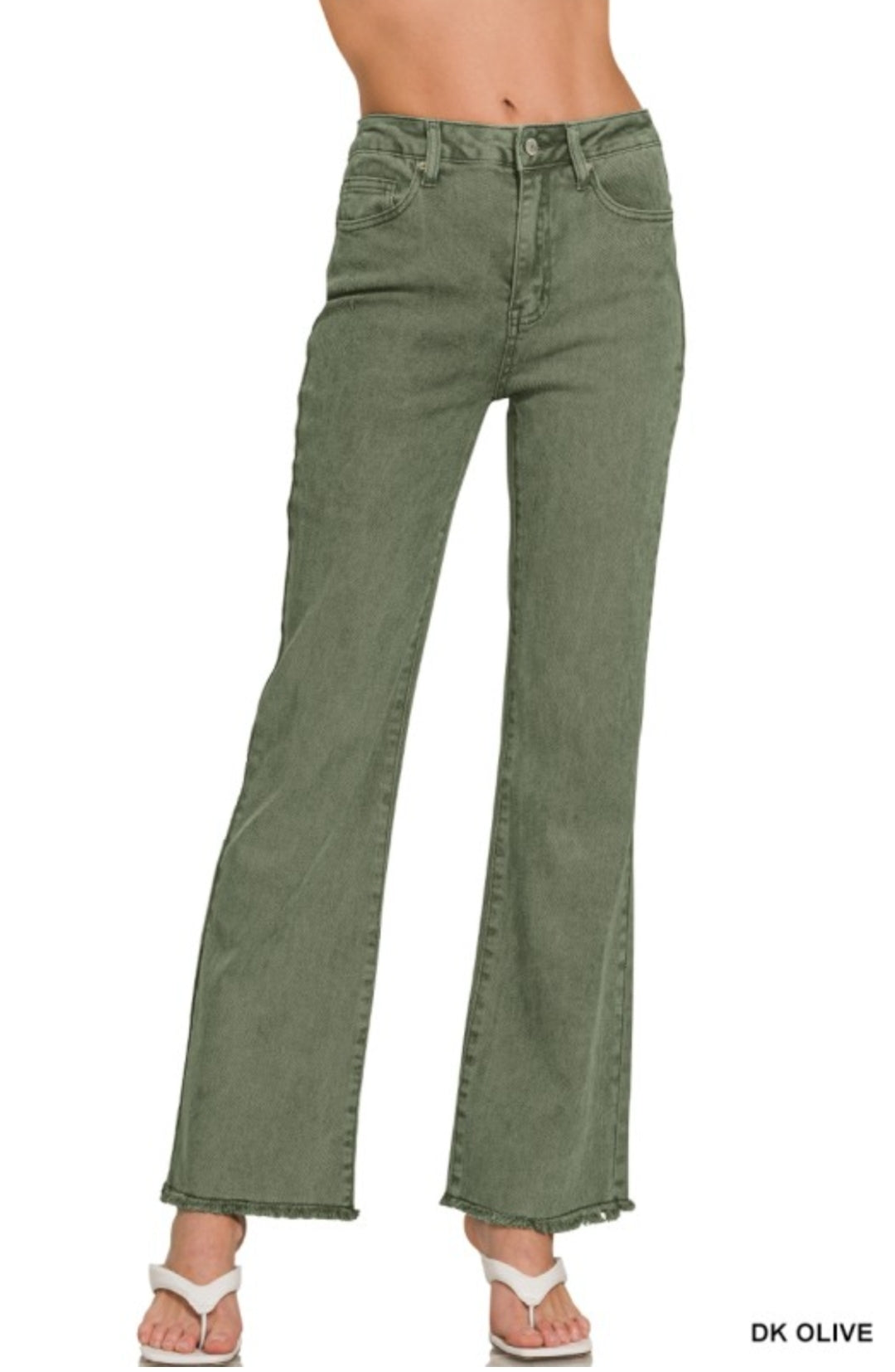DARK DENIM WIDE LEG FREY HEM JEANS