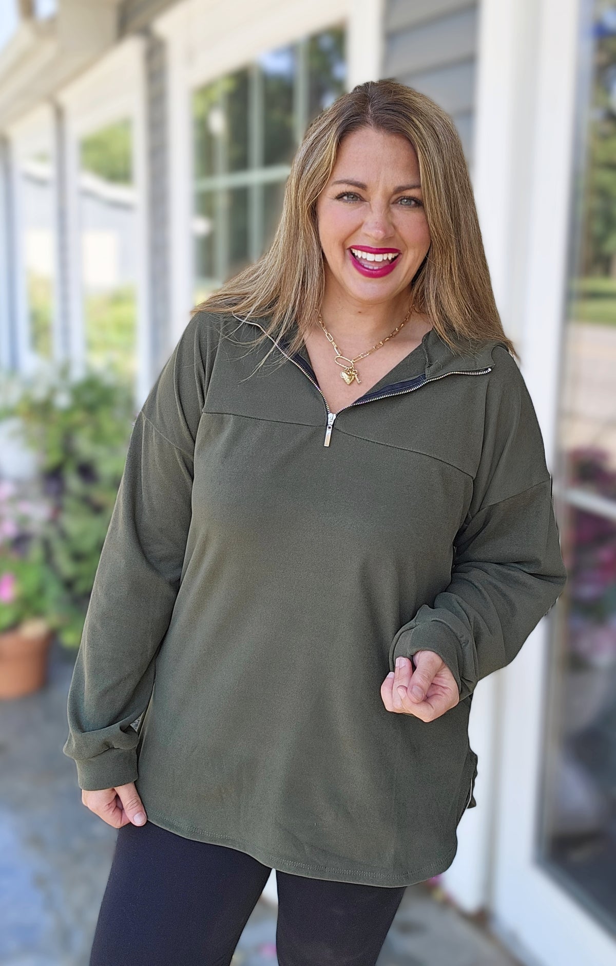 TAUPE QUARTER SNAP SOFT PULLOVER SWEATER