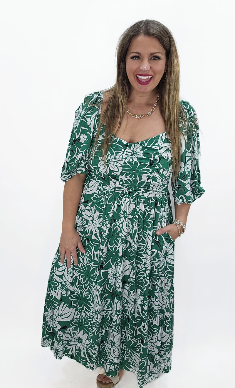 HUNTER GREEN PLAID V NECK LONG DRESS