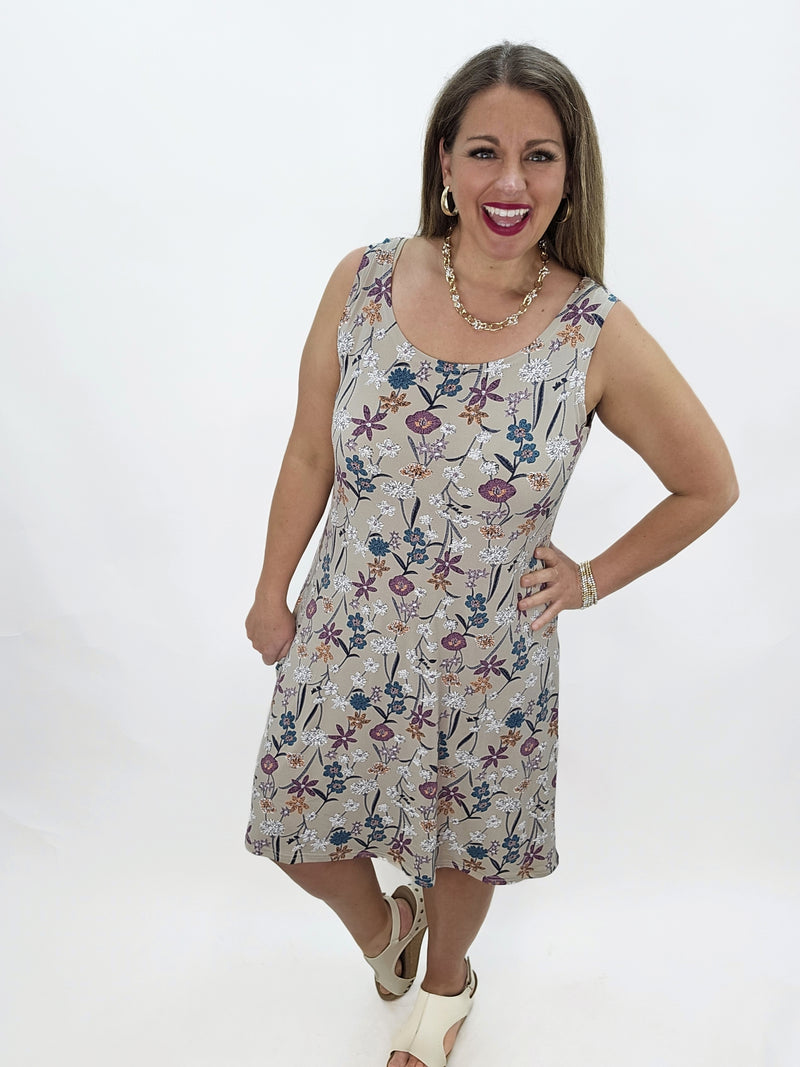 KAREN HART TAUPE FLORAL SLEEVELESS DRESS