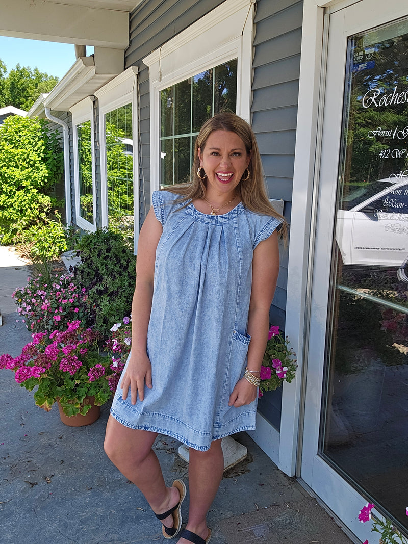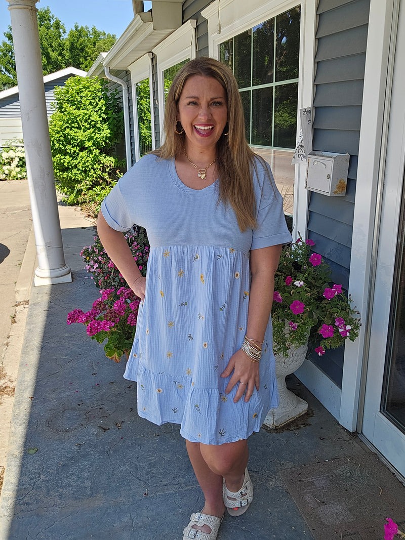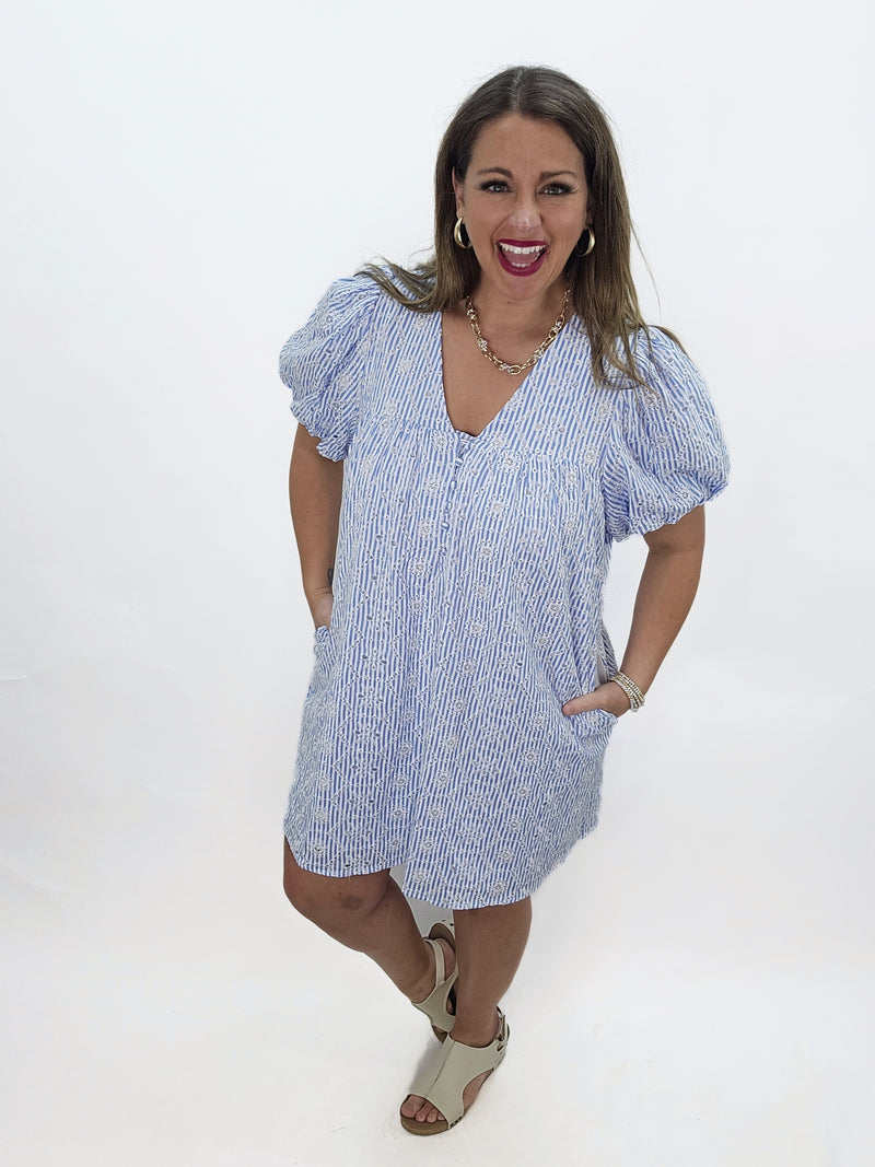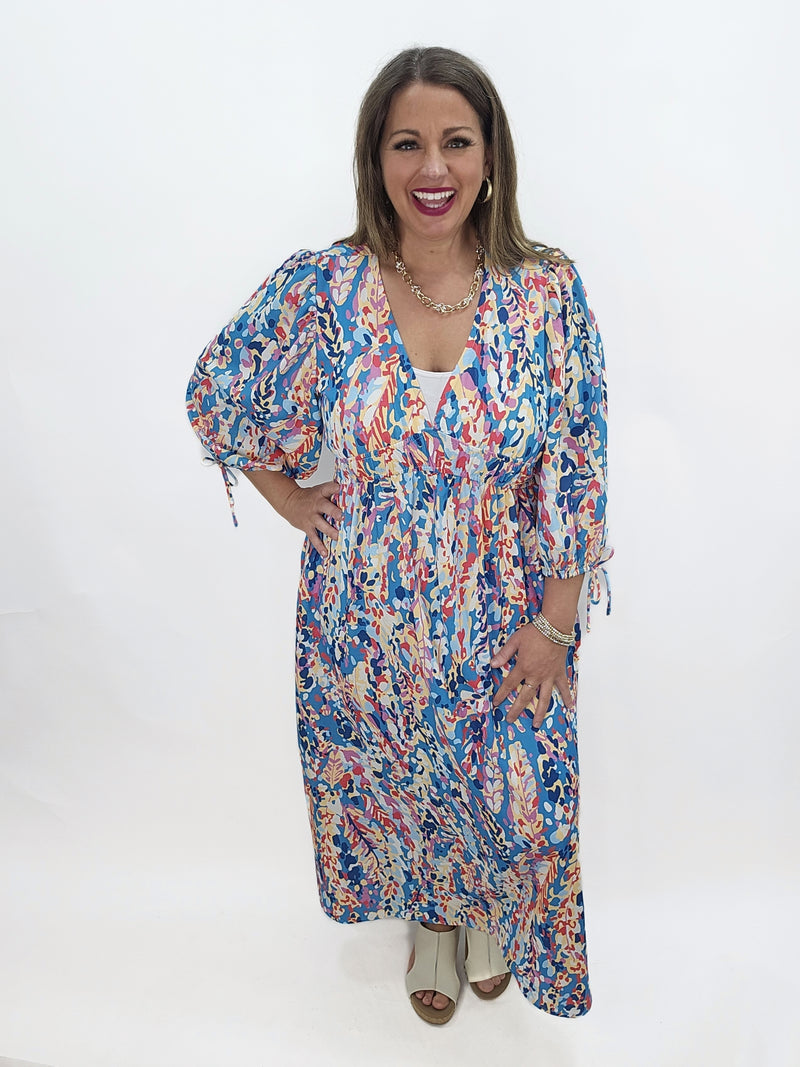 BLUE/BRIGHT FLORAL BUTTER ELASTIC WAIST DRESS