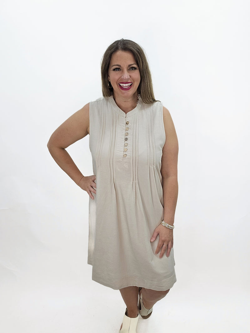 BEIGE SMOCKED TOP EMBROIDERED LACE TRIM DRESS