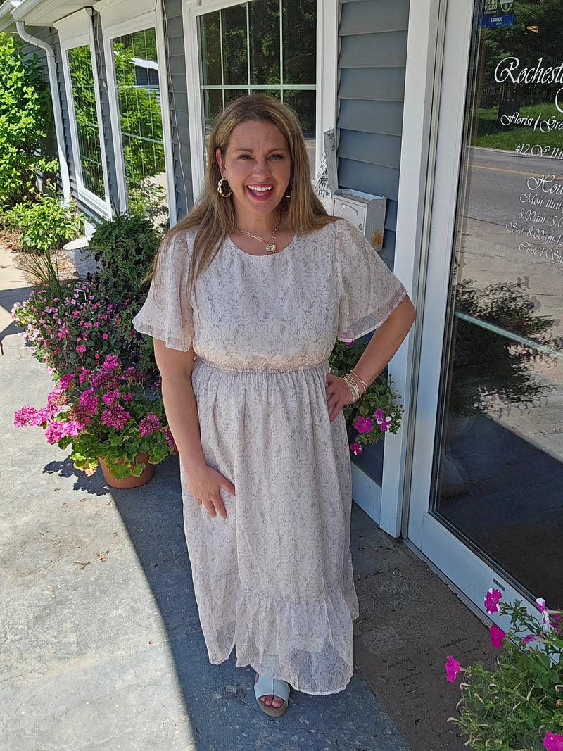 IVORY FLORAL SHEER OVERLAY ELASTIC WASIT DRESS