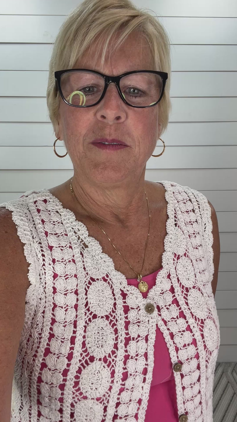 IVORY BUTTON DOWN CROCHET VEST WITH FRINGE HEM