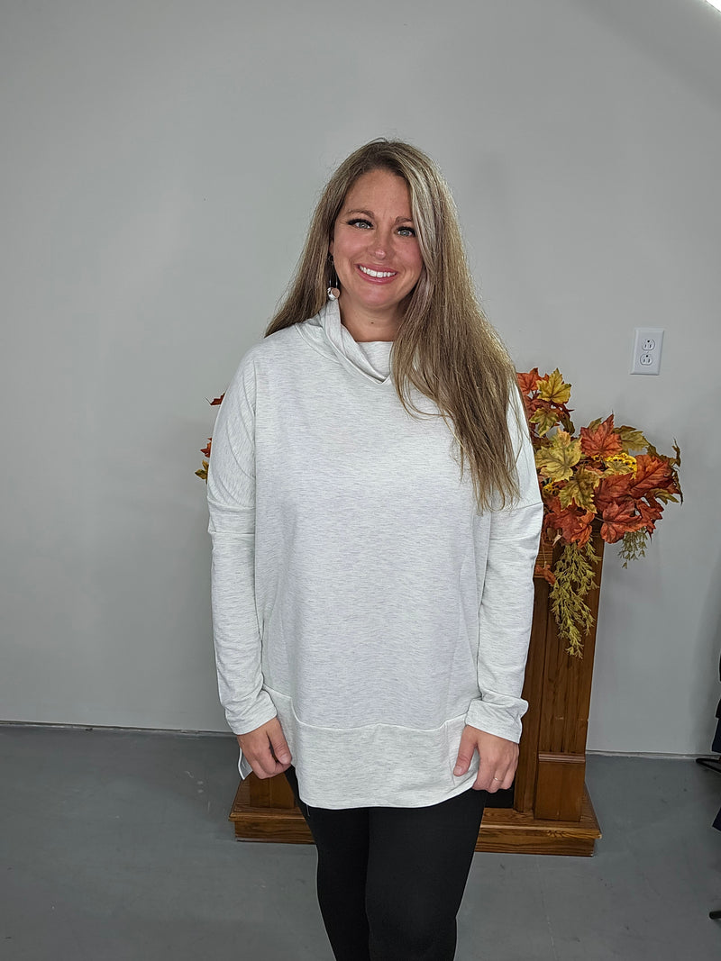 TAUPE MOCK NECK CENTER SEAM SWEATER