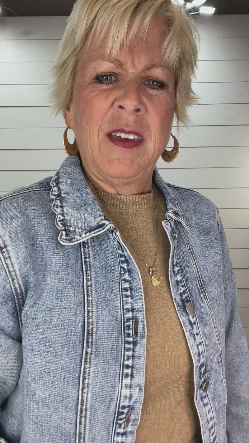 DENIM SCALLOPED TRIM BUTTON UP JACKET
