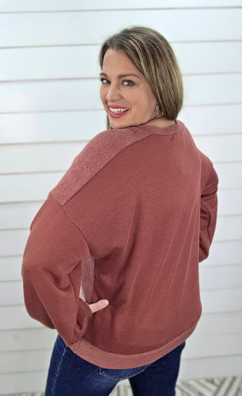 MARSALA FRENCH TERRY W/ REVERSE FRENCH TERRY KNIT PULLOVER