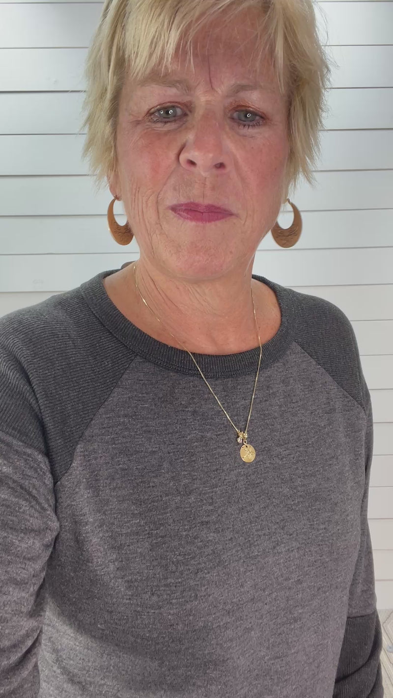 Elevate your everyday with this Charcoal Fabric Blocked Long Sleeve Top—a cozy basic with just the right touch of boutique detail. Featuring a classic crew neckline and mixed fabric textures, this top brings visual interest without sacrificing comfort.