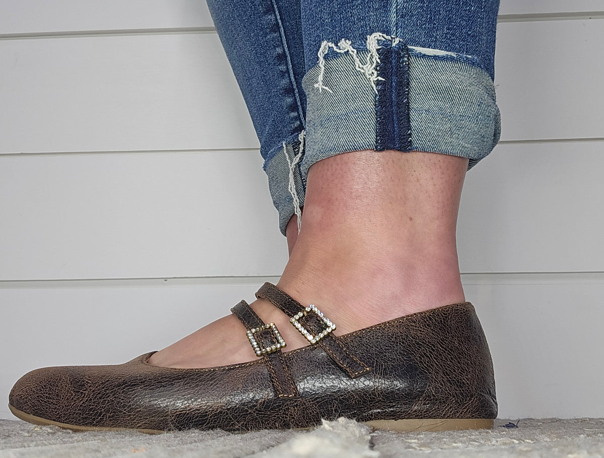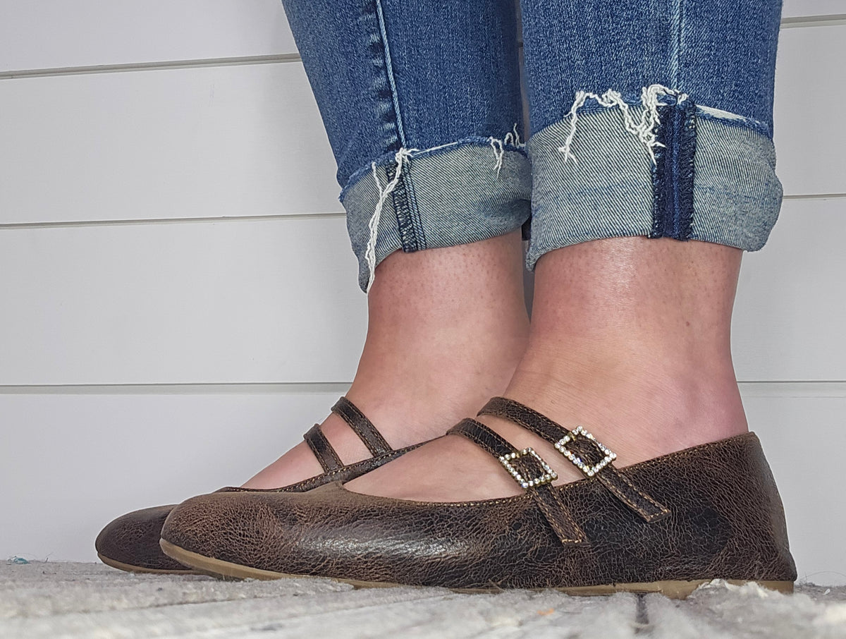 Step into style and sparkle with the Corky's Own It Ballet Flat in rich espresso crinkle. This elevated take on a classic flat features a textured faux leather finish, double strap detail, and petite rhinestone buckles that add the perfect touch of glam. Designed for all-day comfort with a flexible sole and easy slip-on fit, these shoes are just as practical as they are pretty.