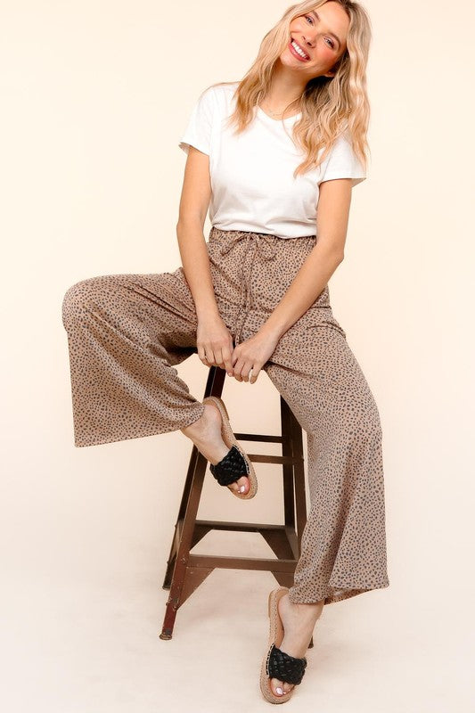 DOTTED LEOPARD KNIT DRAWSTRING PANTS