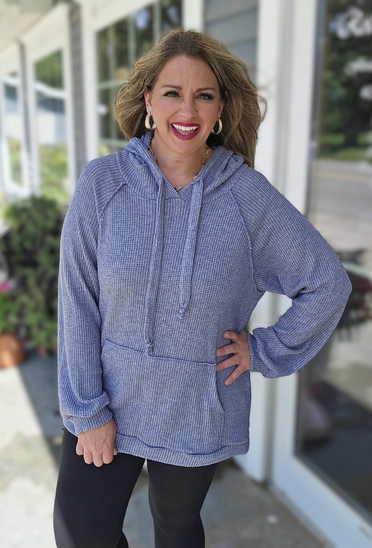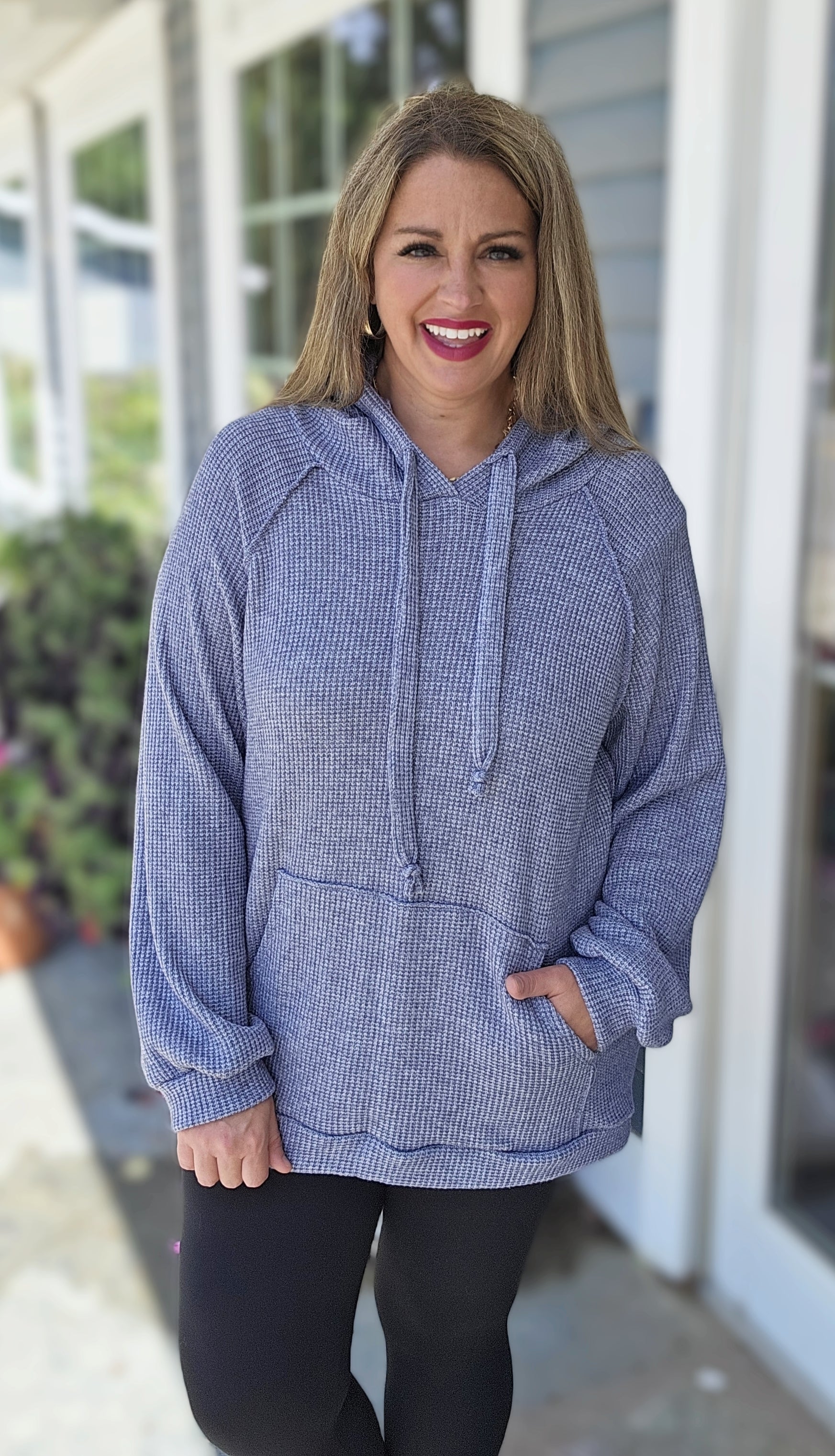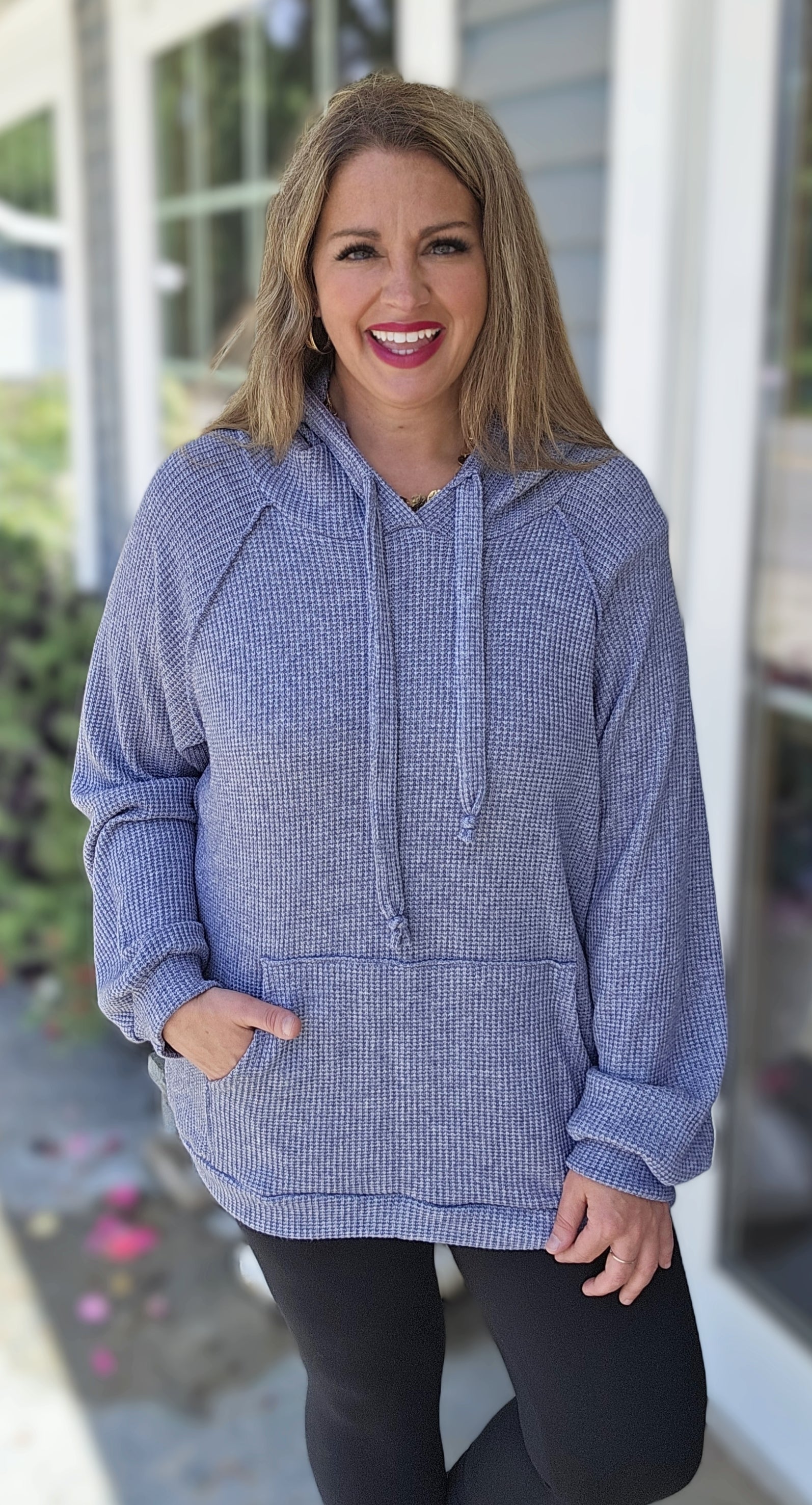 LIGHT DENIM WAFFLE TEXTURED HOODIE WITH KANGAROO POCKET
