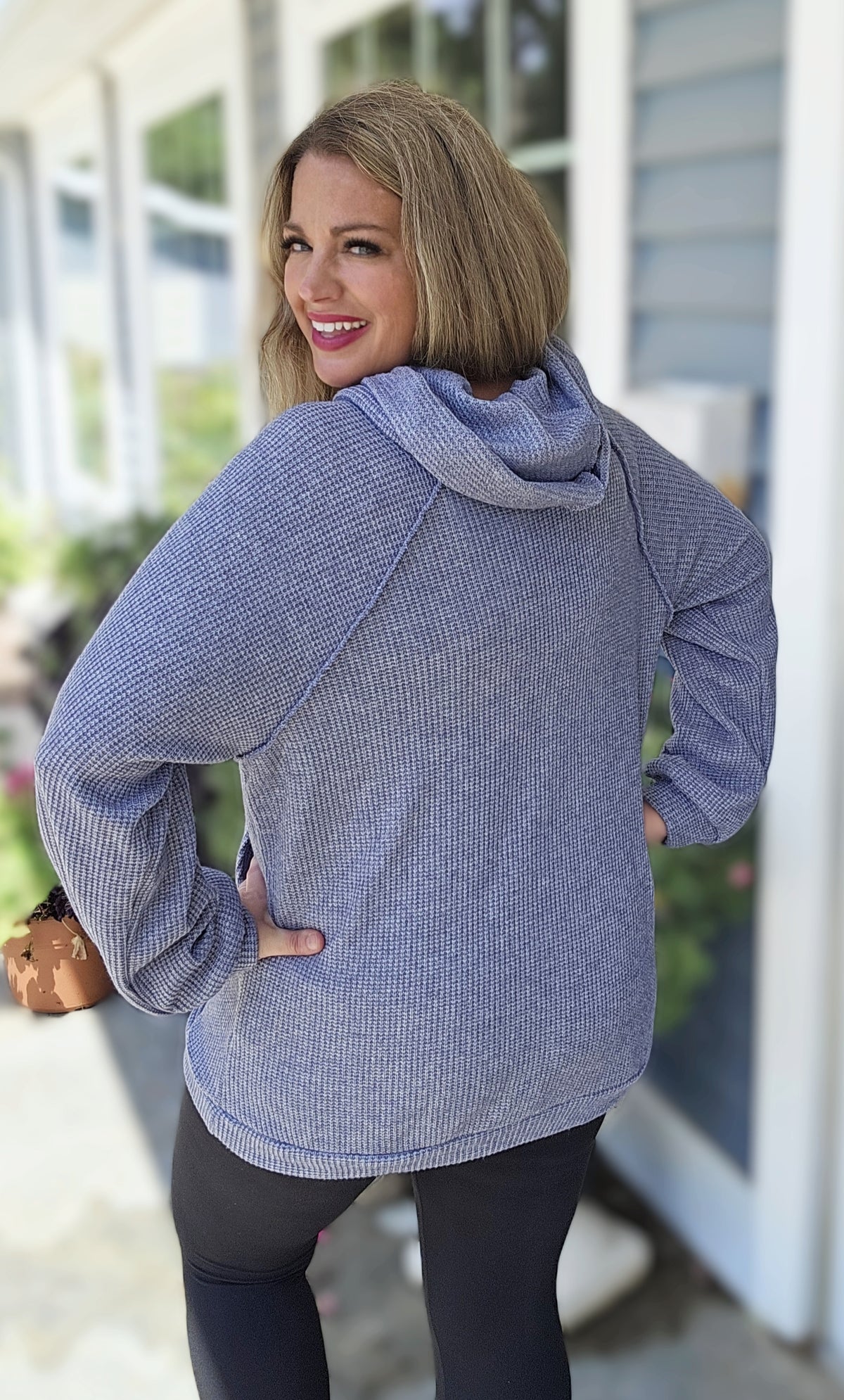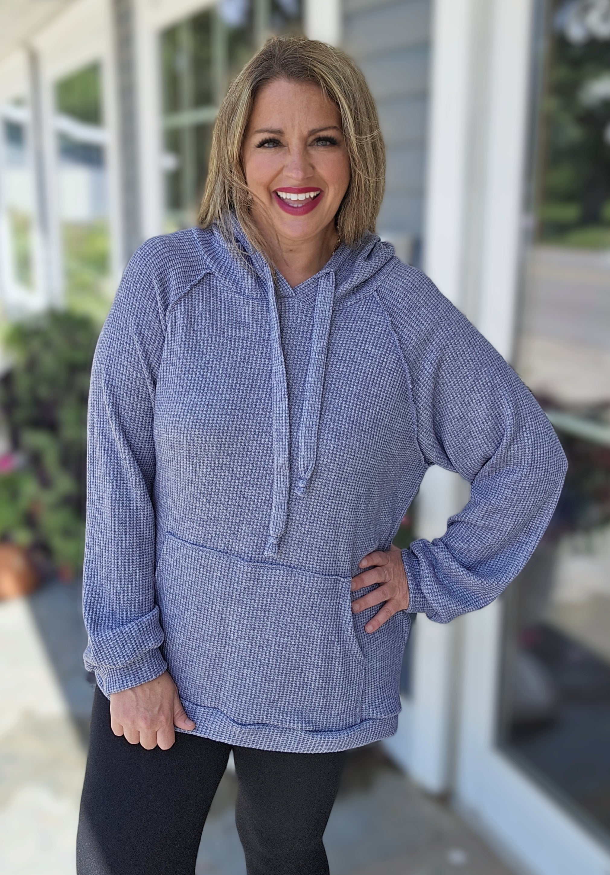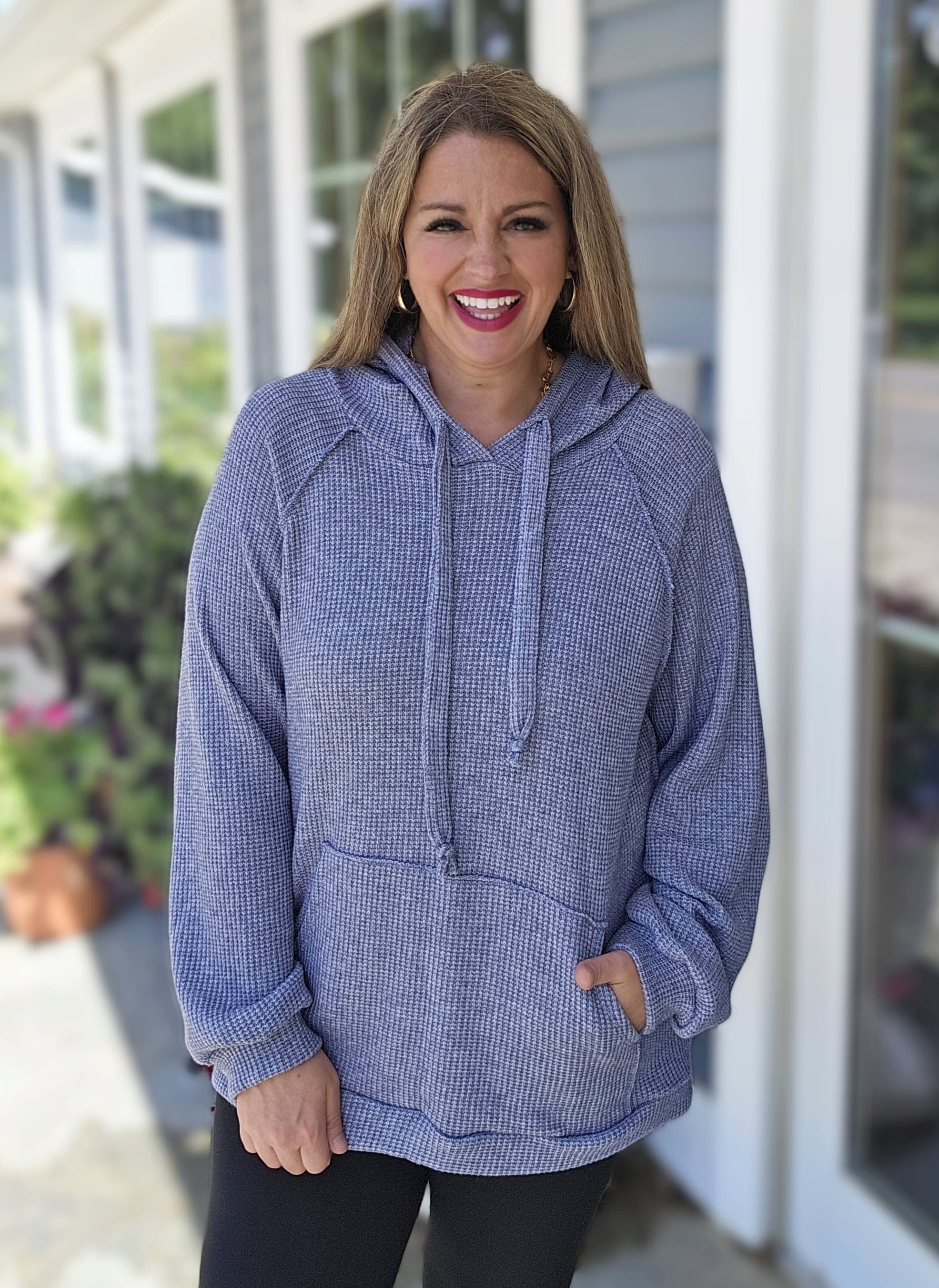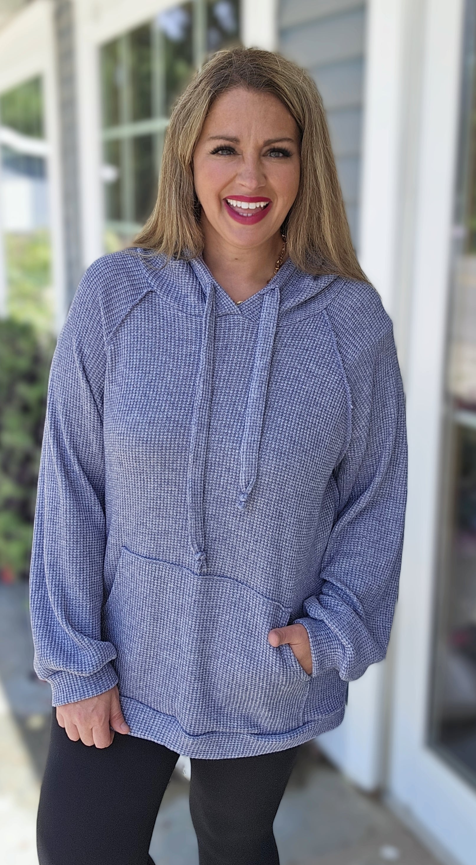 LIGHT DENIM WAFFLE TEXTURED HOODIE WITH KANGAROO POCKET