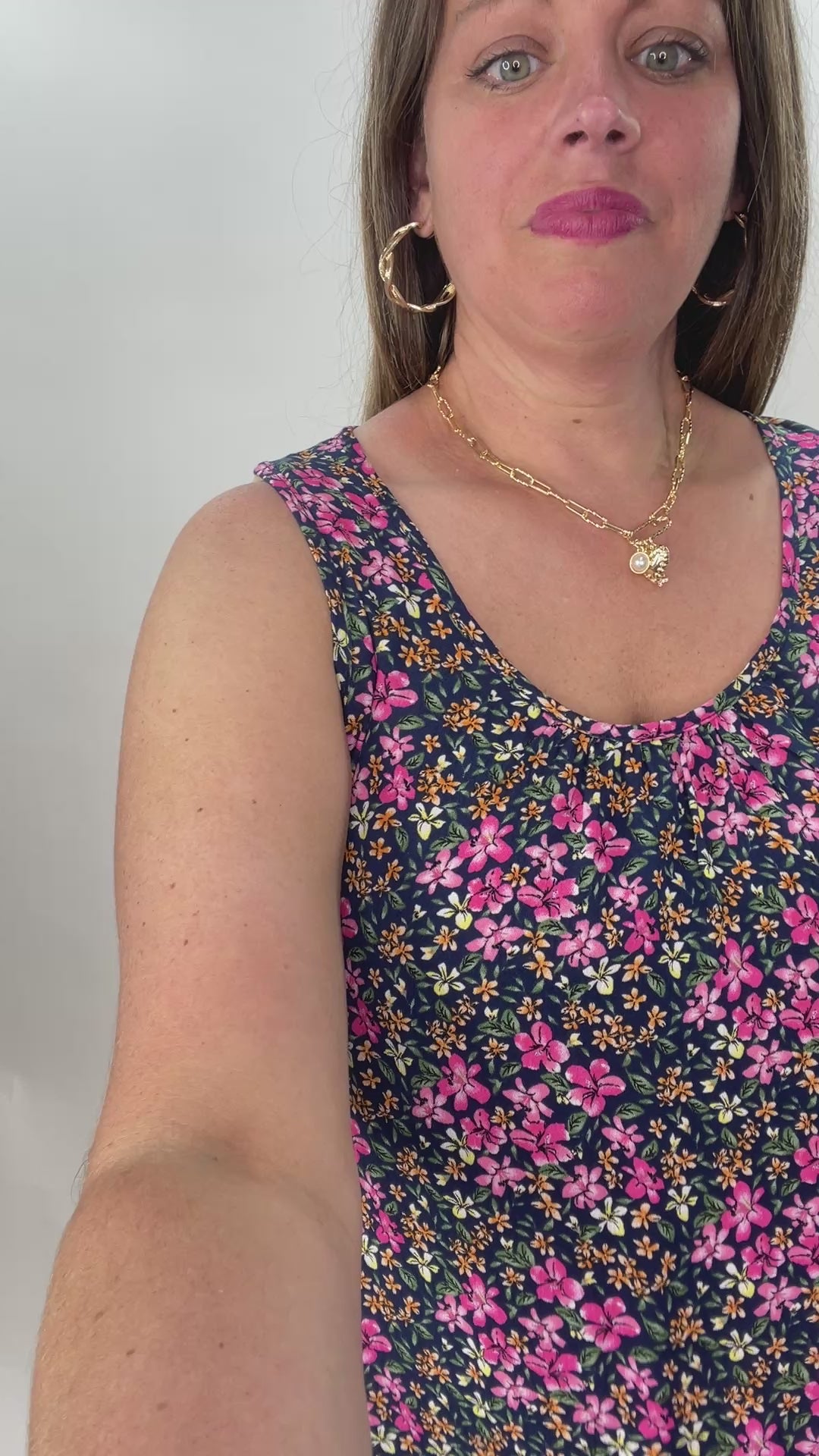 This navy and pink petite floral woven sleeveless top is the perfect addition to your summer wardrobe. Made from high-quality materials, it features a delicate floral pattern and a flattering sleeveless design. Stay cool and stylish all season long with this versatile and trendy top.