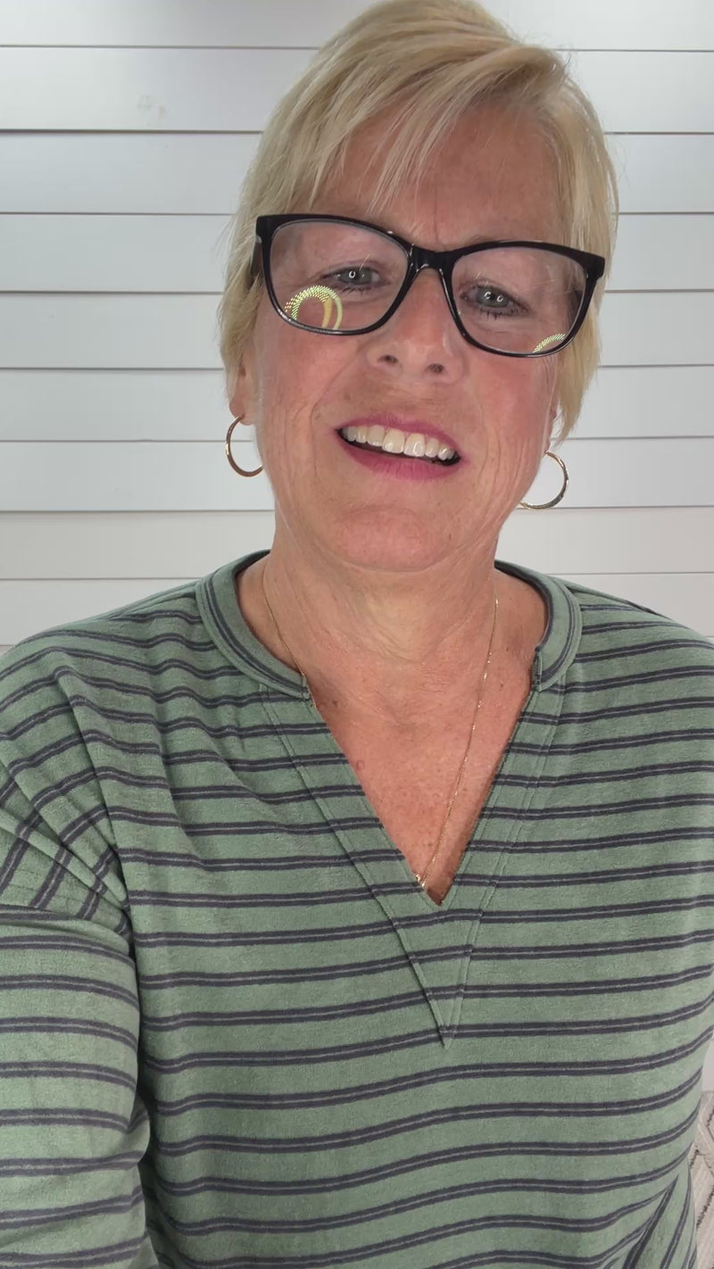 OLIVE V NECK MICRO BRUSHED LONG SLEEVE KNIT TOP