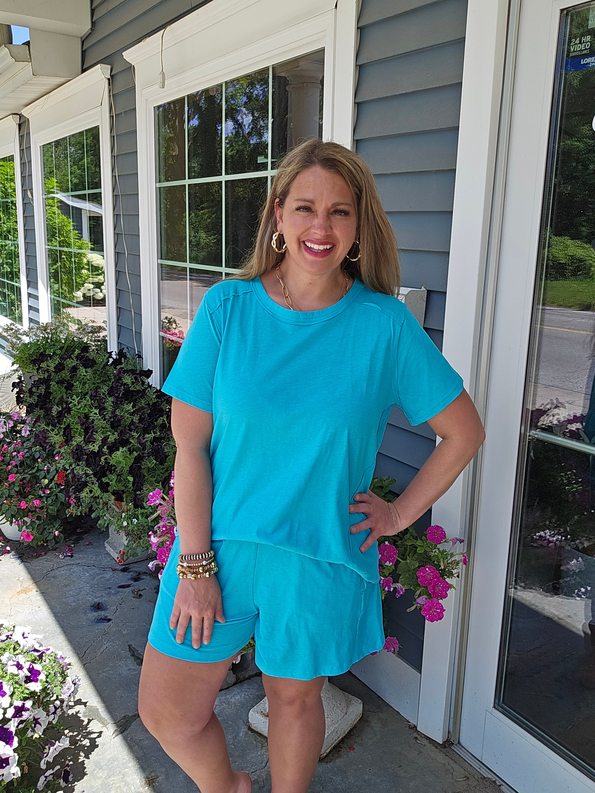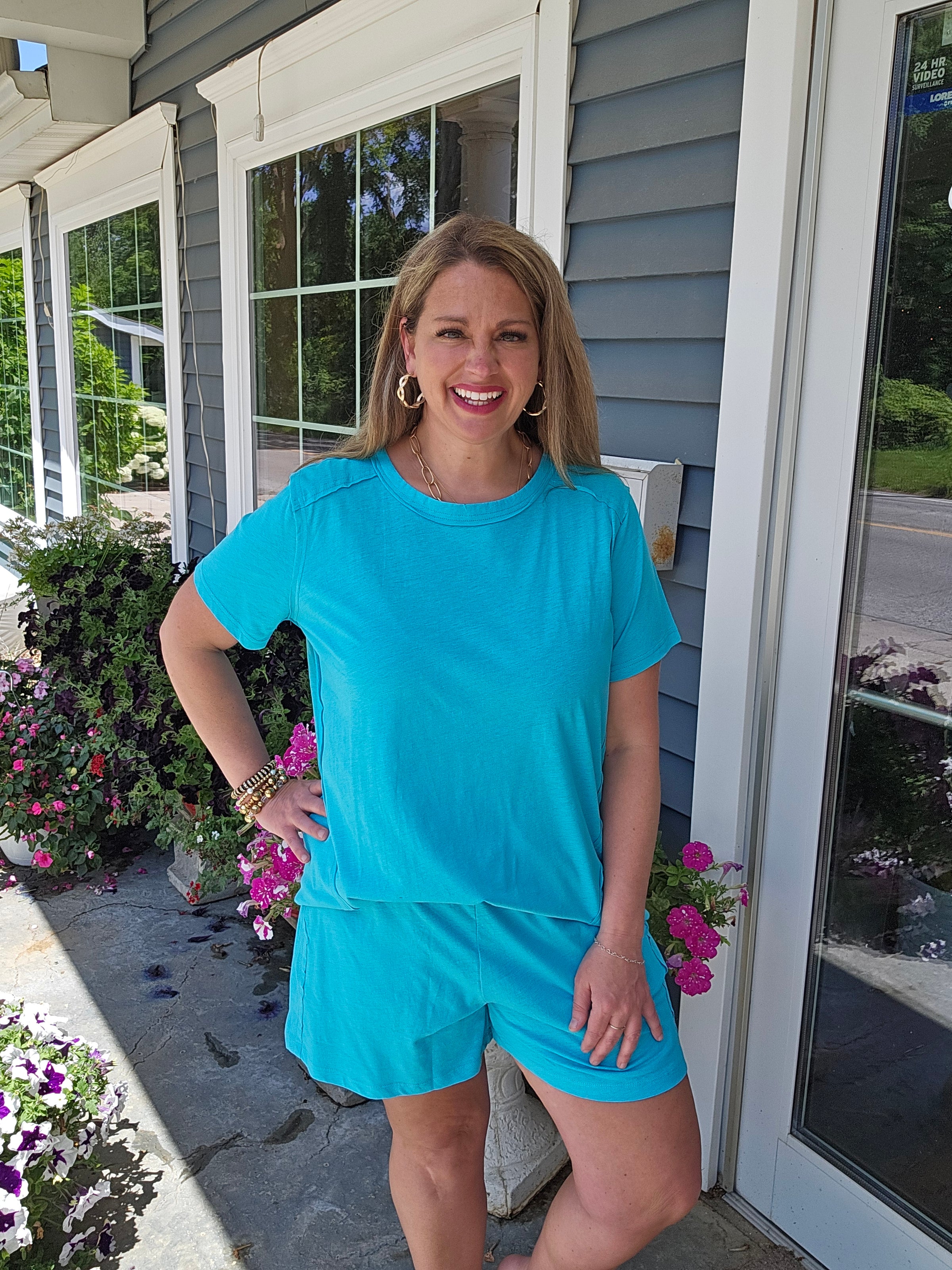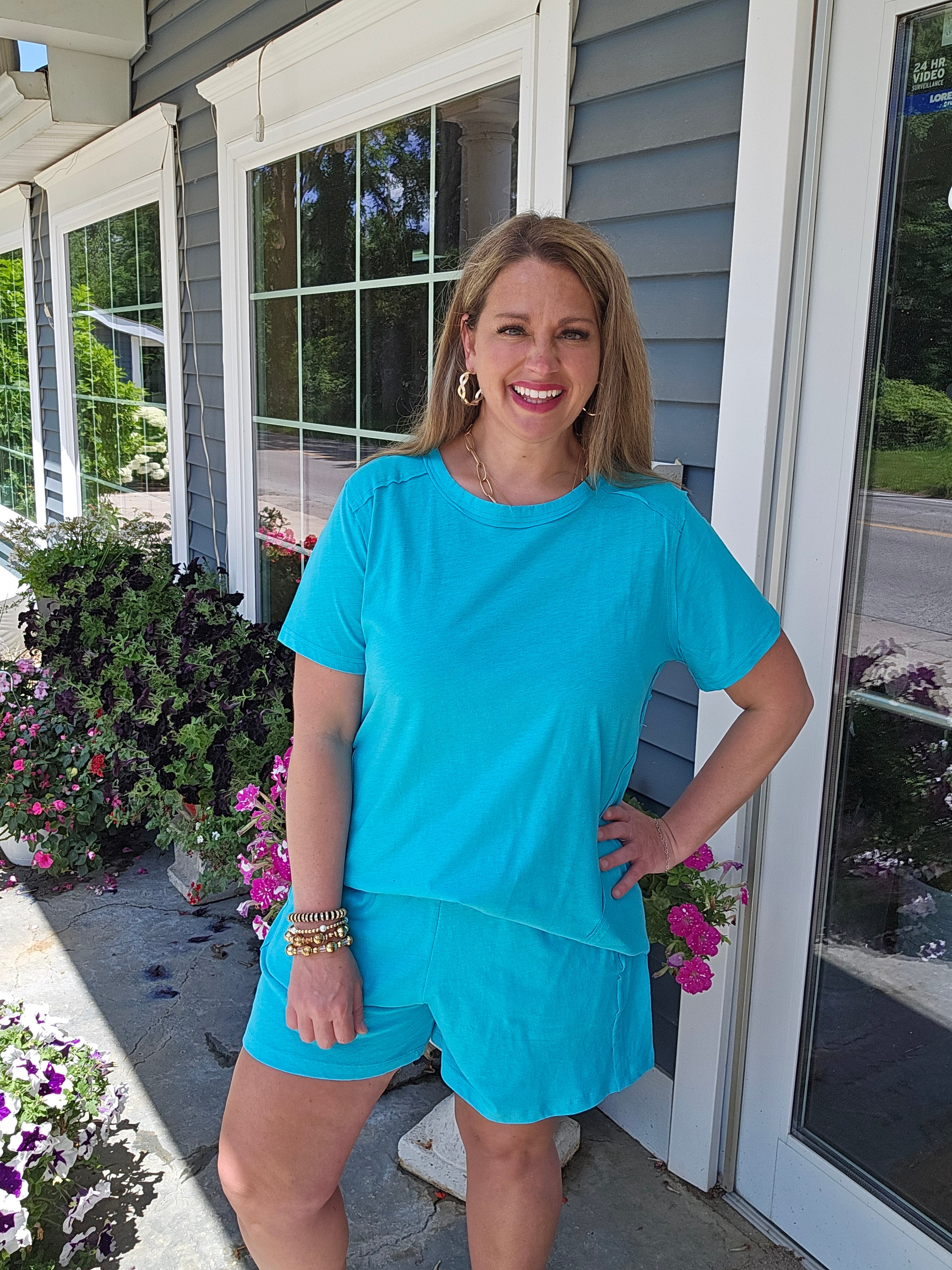 TURQUOISE COTTON SLUB SHORT SLEEVE TOP - FINAL SALE