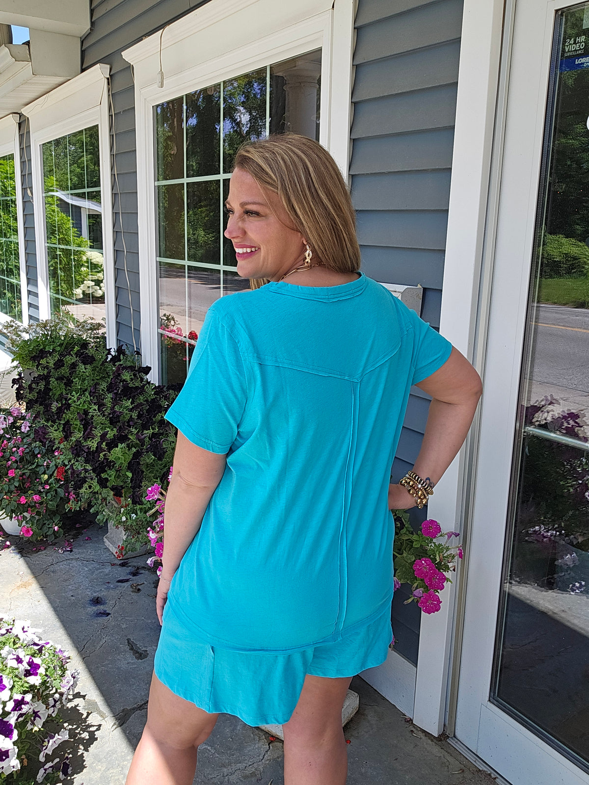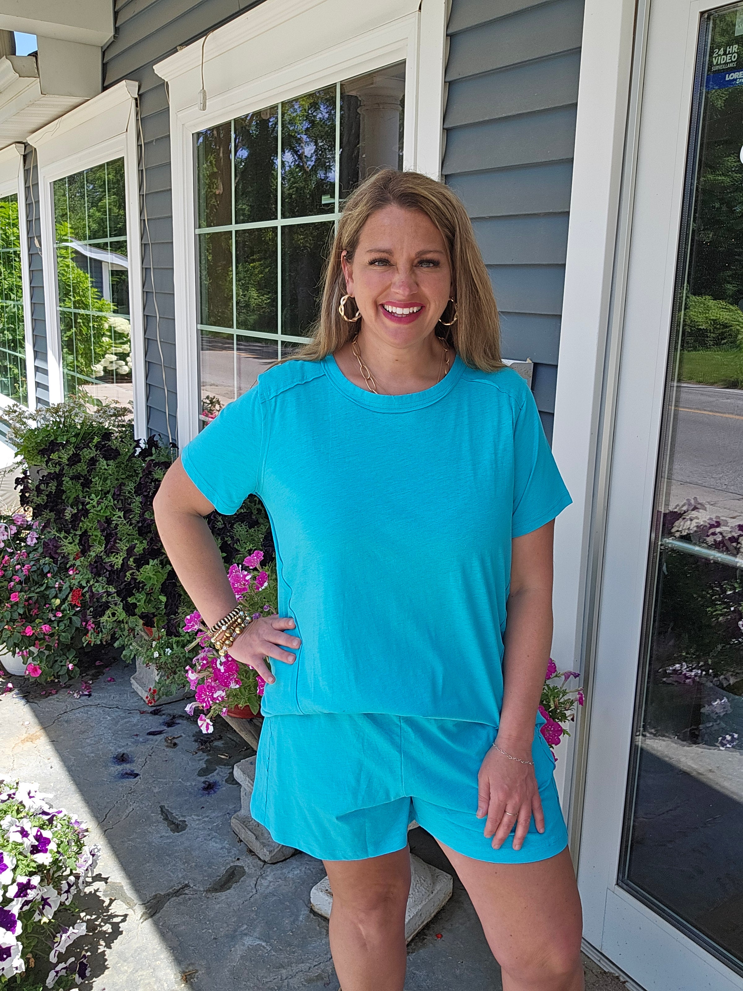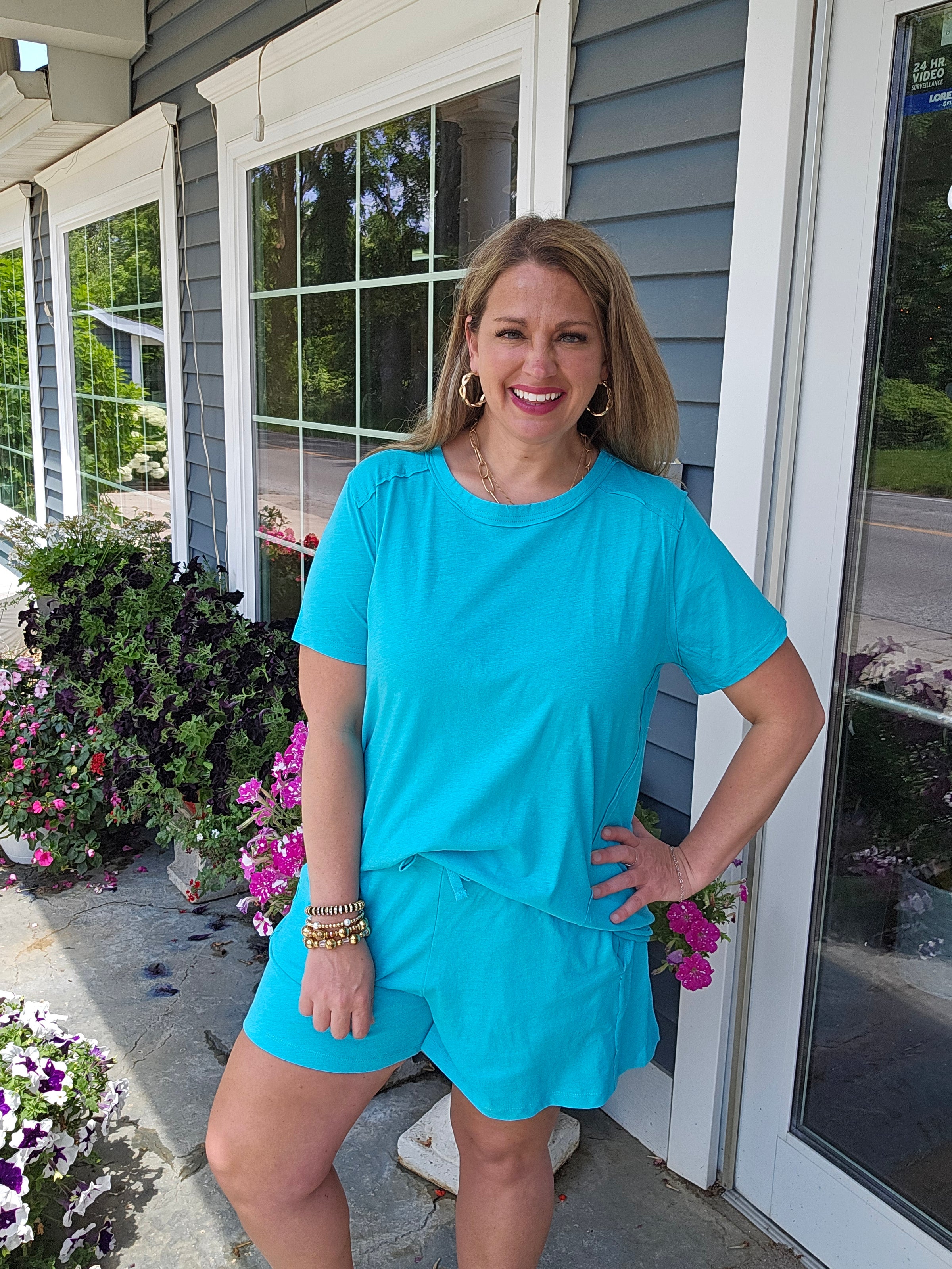 TURQUOISE COTTON SLUB SHORT SLEEVE TOP - FINAL SALE